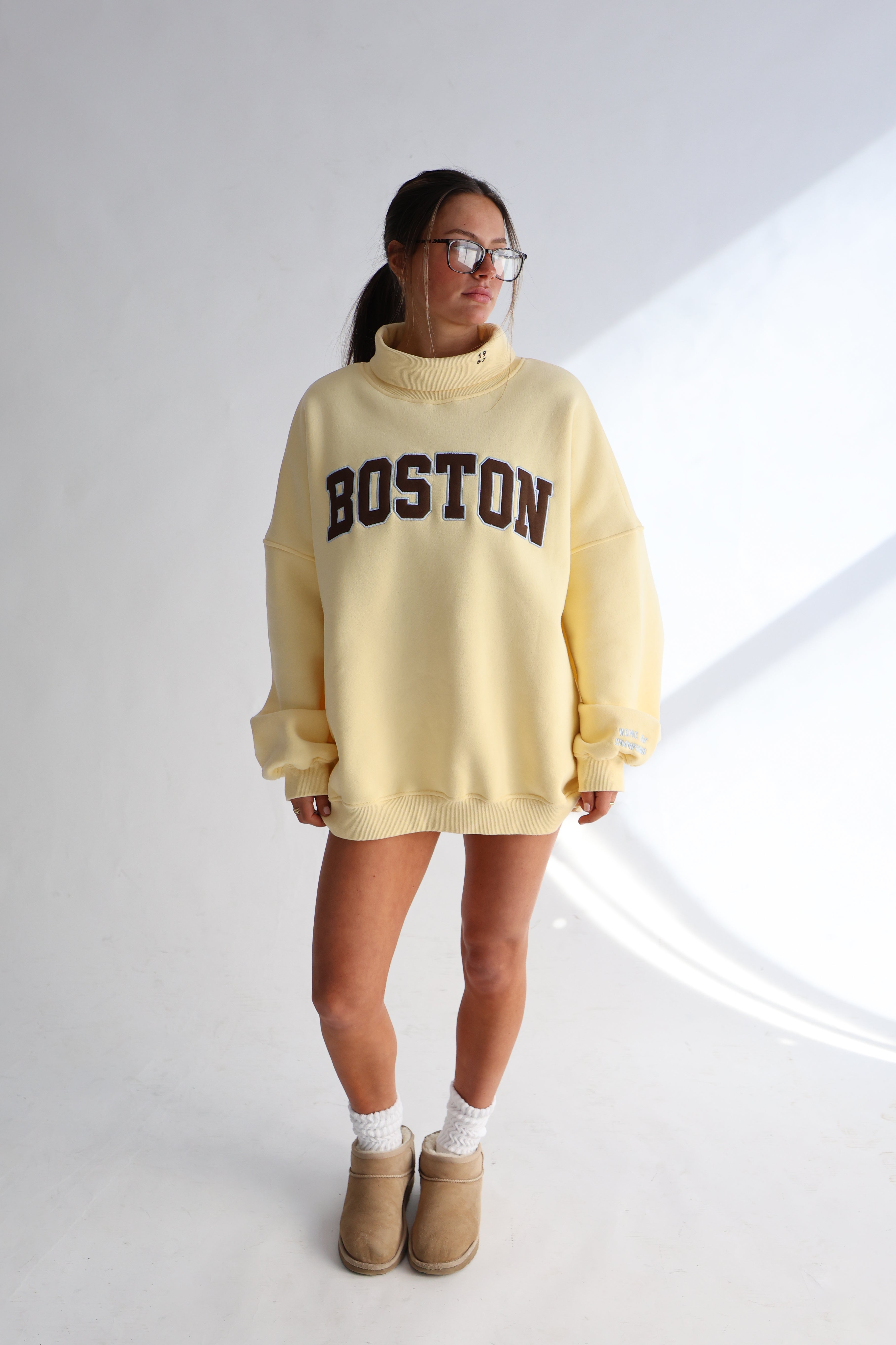 The City Rollneck in "sunshine" embodies the timeless ease of New England mornings. Designed with a clean, structured neckline and premium brushed fleece, it’s equal parts cozy and refined.