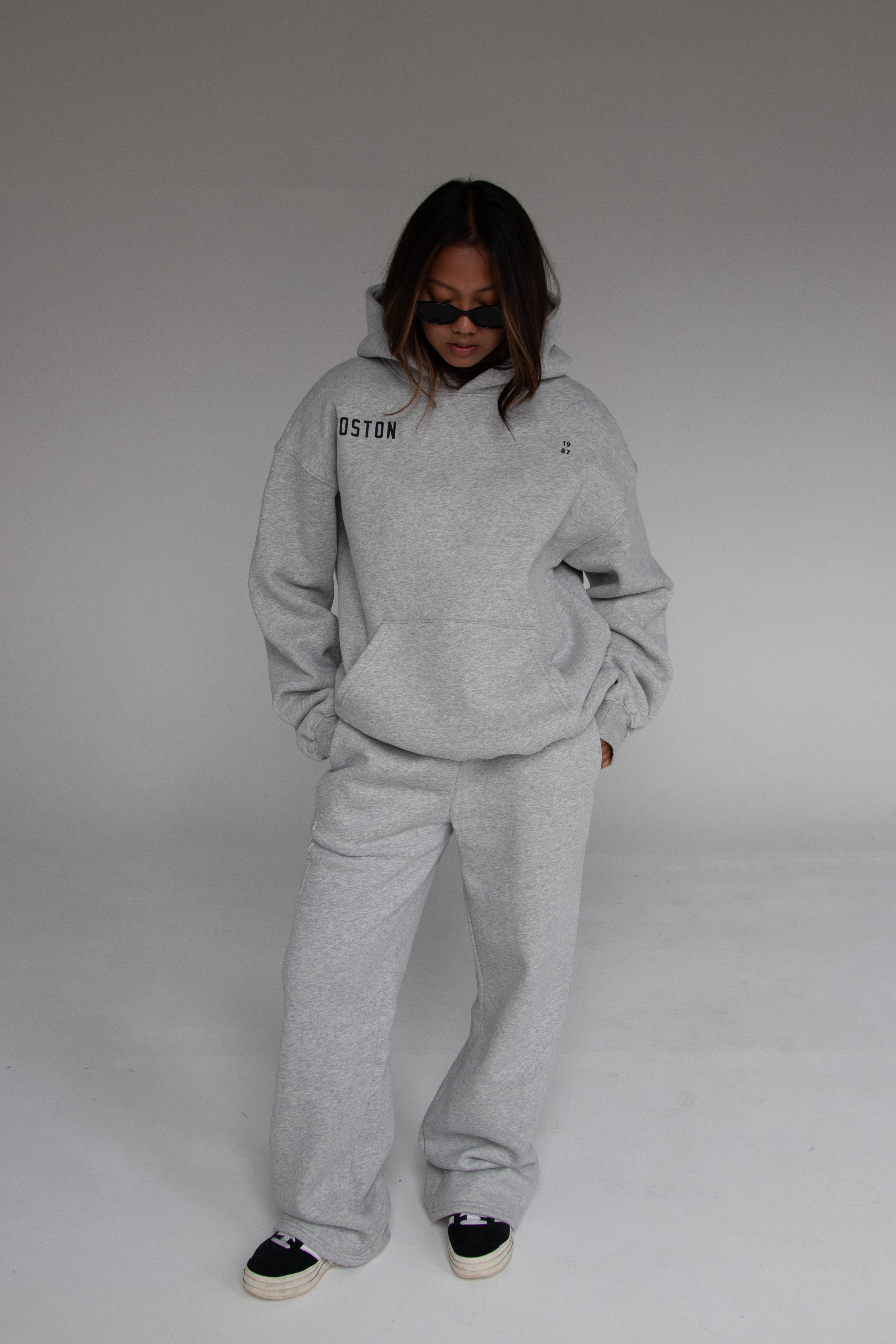 The Trendsetters Hoodie in "Dunks" blends elevated streetwear with everyday ease. Crafted from ultra-soft, Label fleece in a cozy gray, this silhouette hits just right—oversized in feel, but clean in execution.