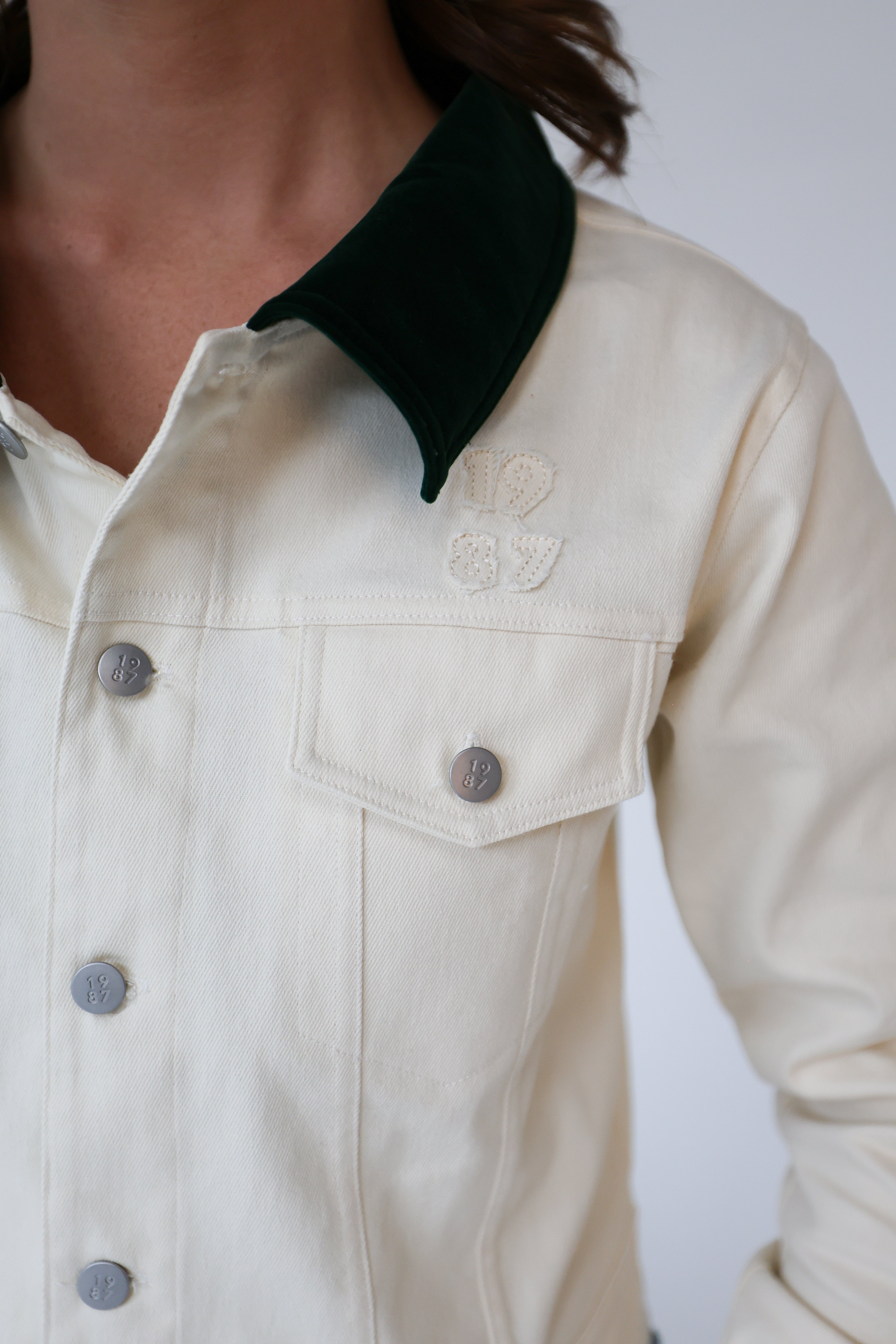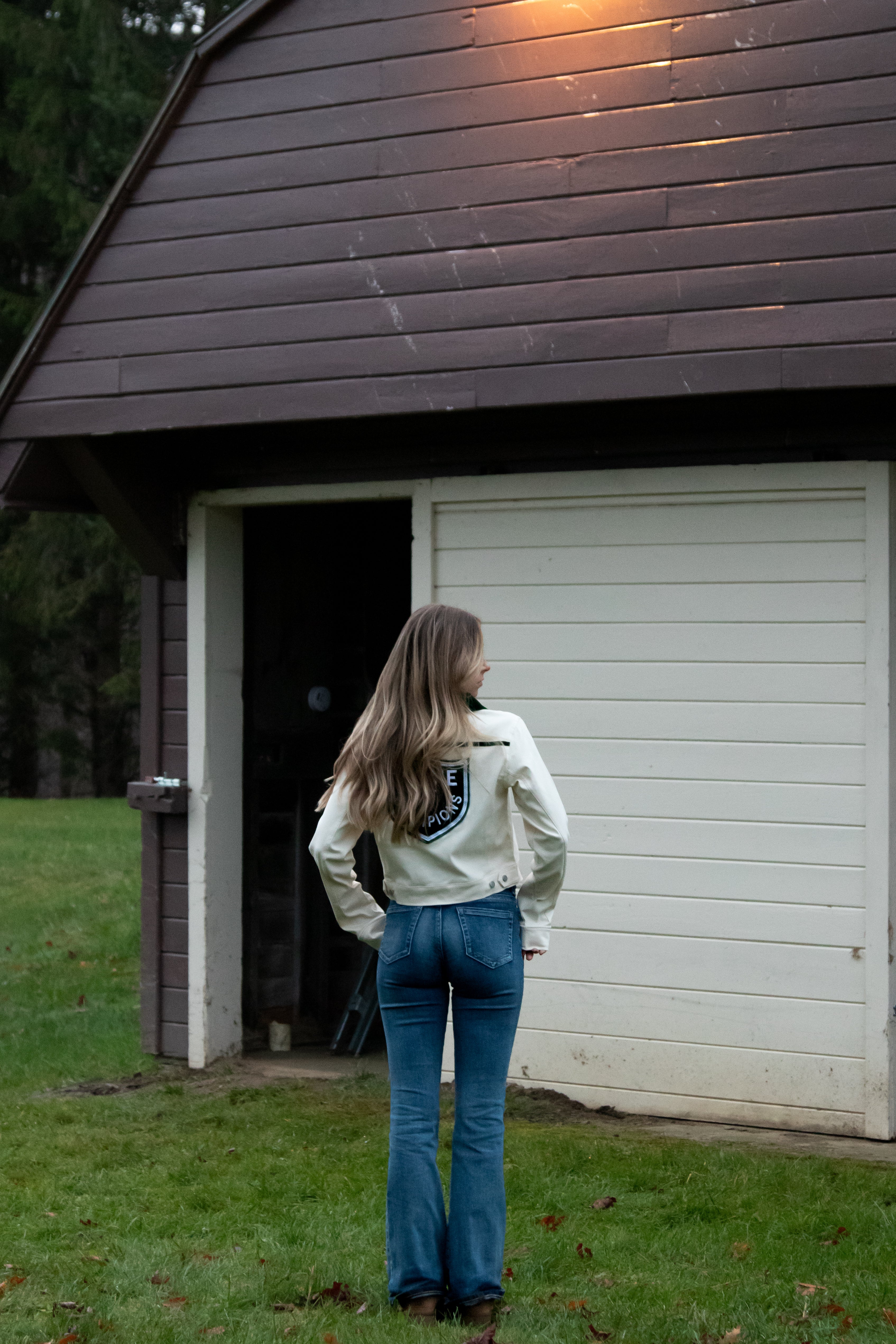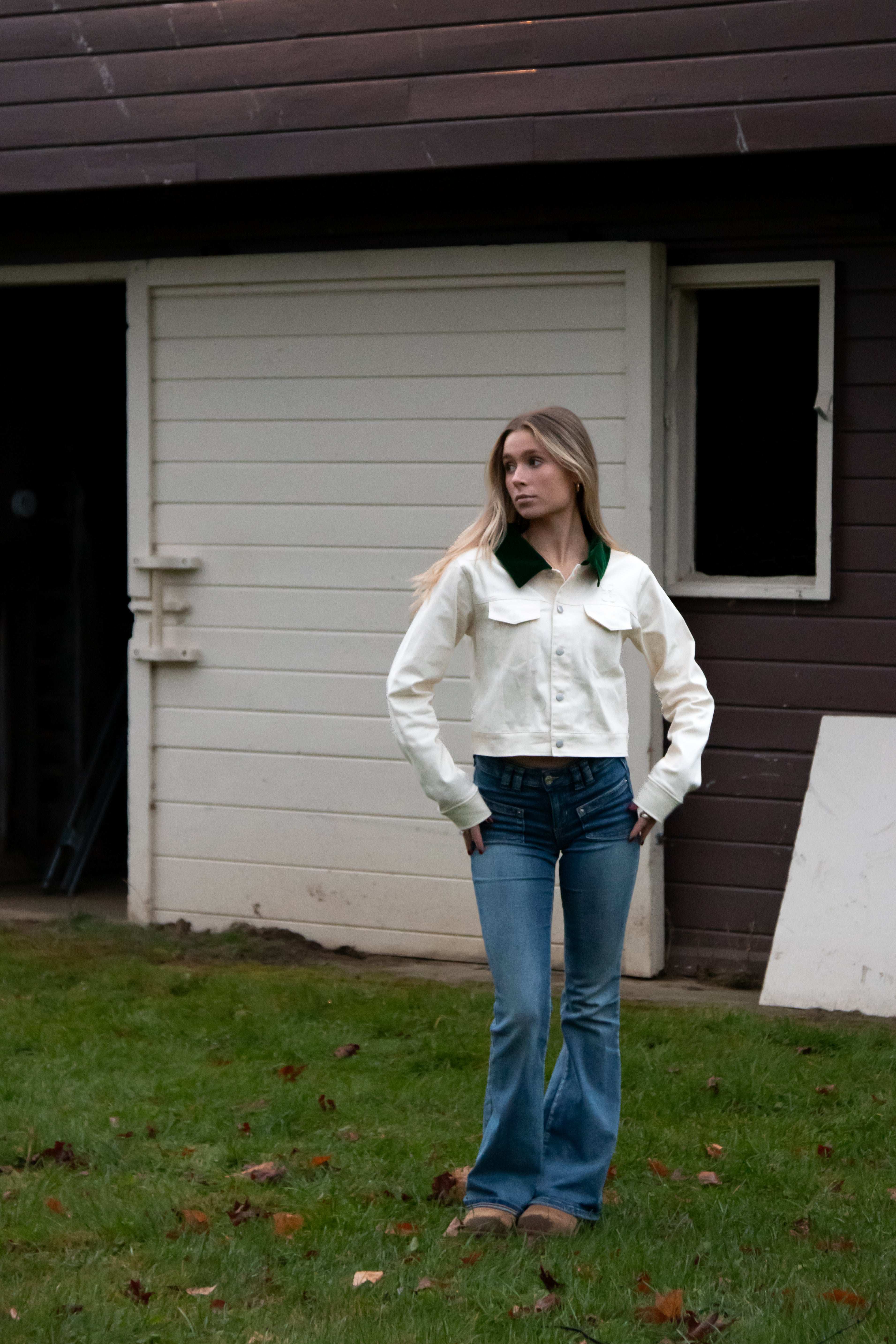 Meet the Equestrian Denim Jacket in “cream.” A tailored, structured take on classic sport heritage — reimagined through a luxury lens. Crafted from 100% cotton with a soft brushed finish, this jacket delivers a refined silhouette with everyday wearability.