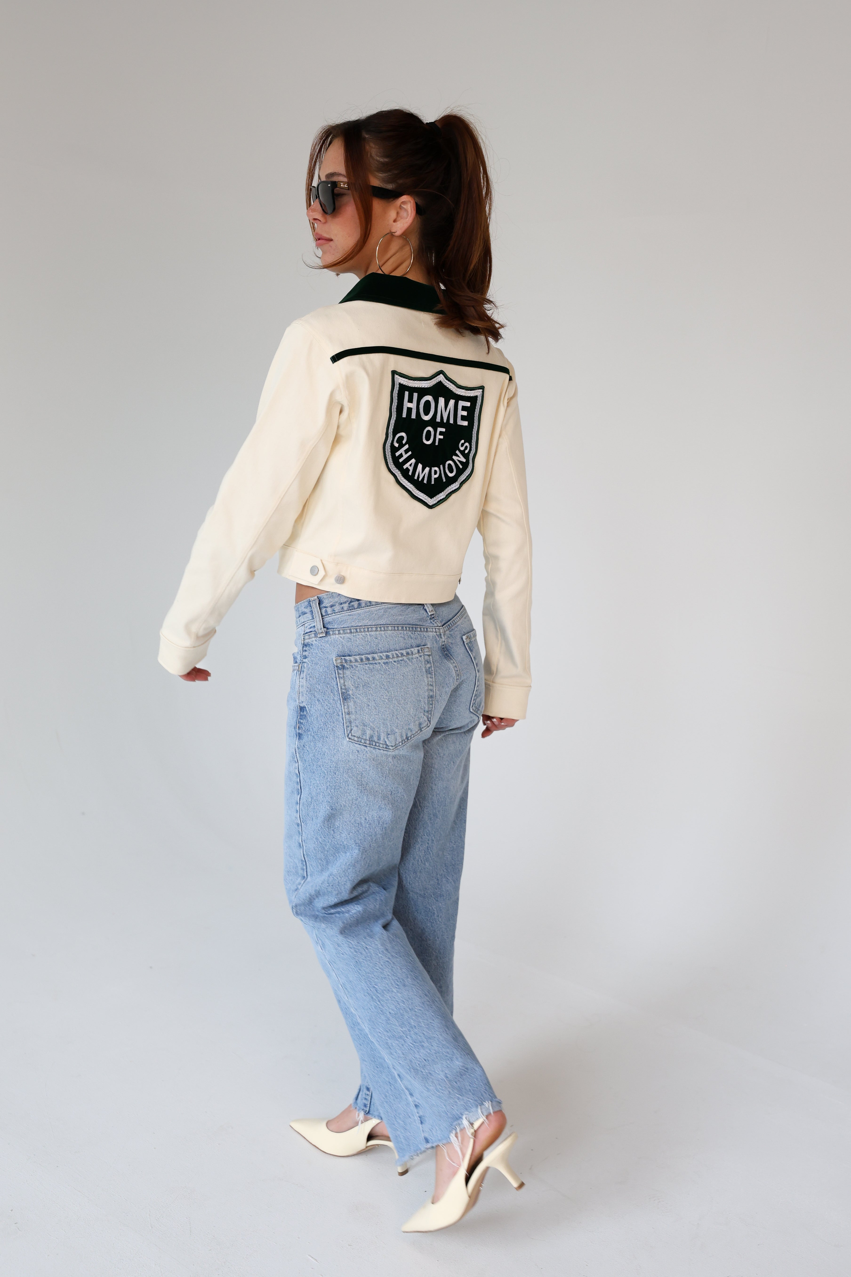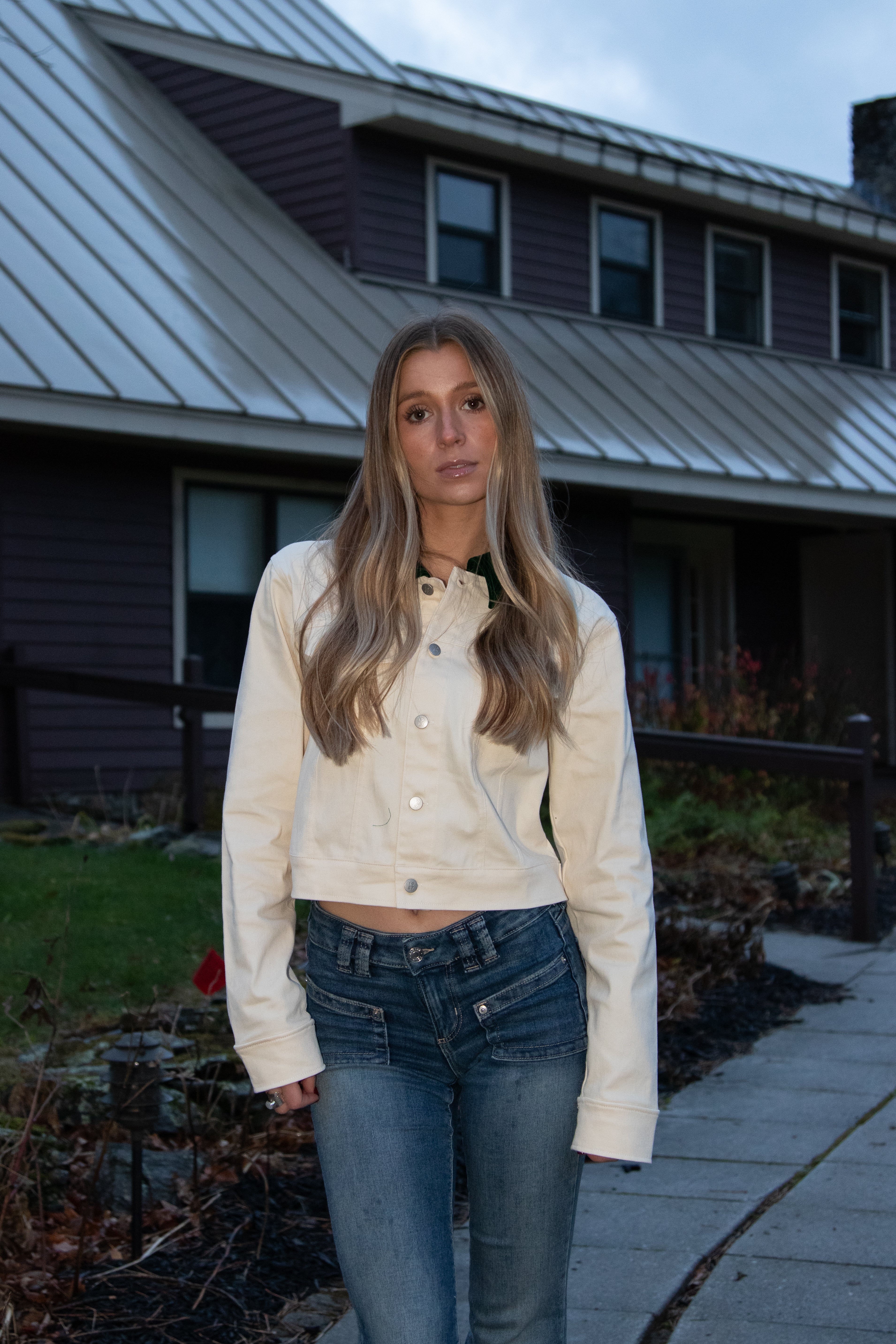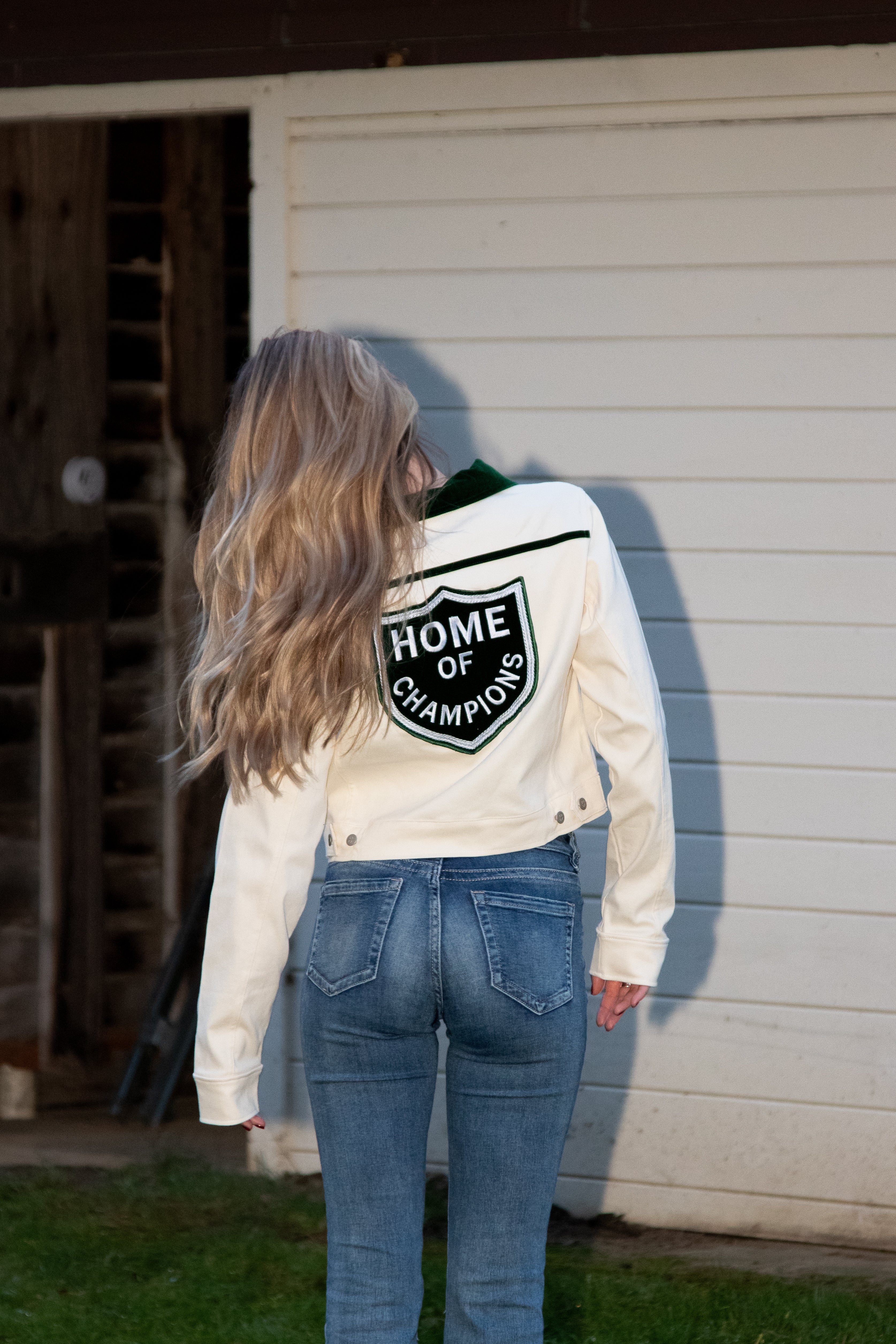 Meet the Equestrian Denim Jacket in “cream.” A tailored, structured take on classic sport heritage — reimagined through a luxury lens. Crafted from 100% cotton with a soft brushed finish, this jacket delivers a refined silhouette with everyday wearability.