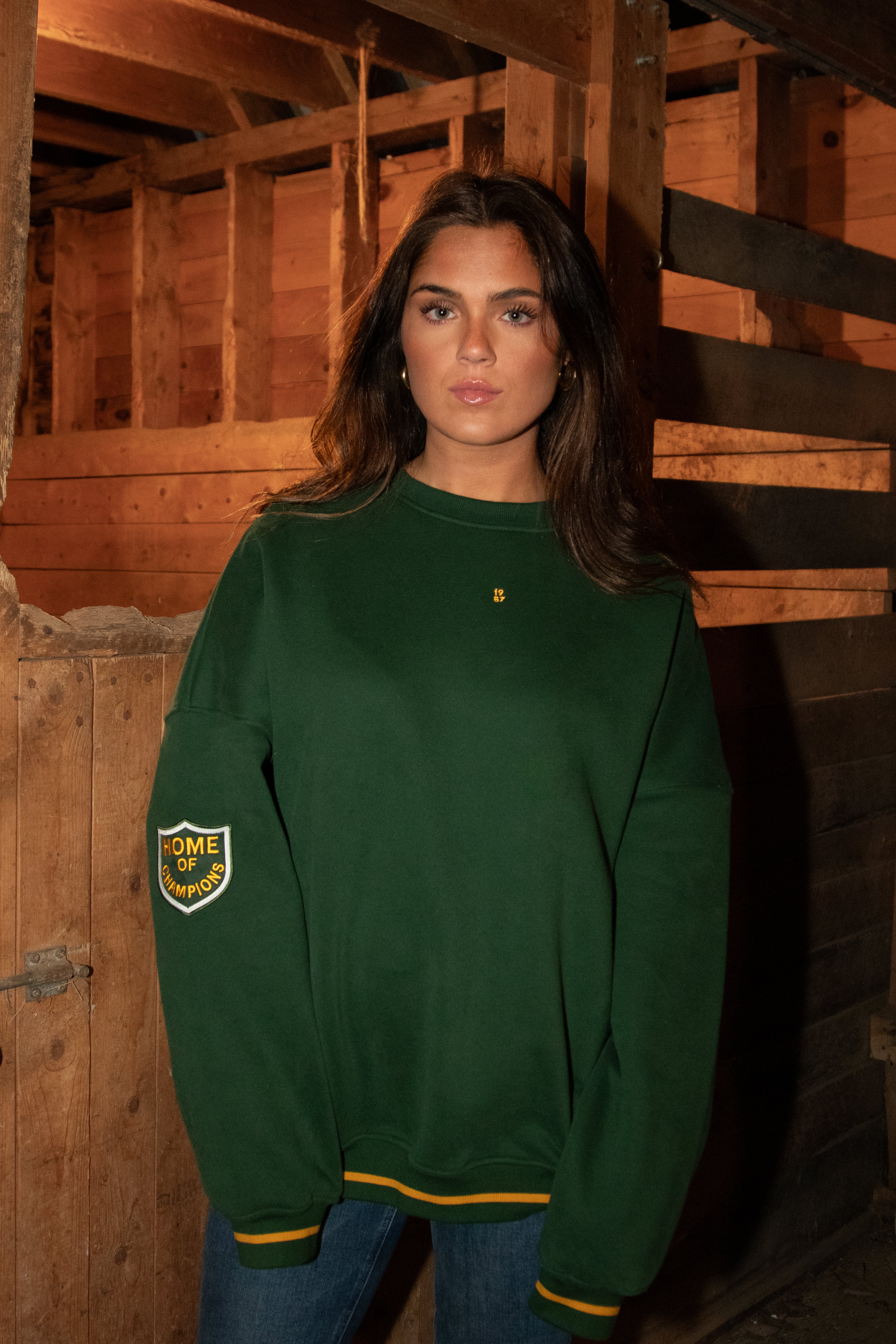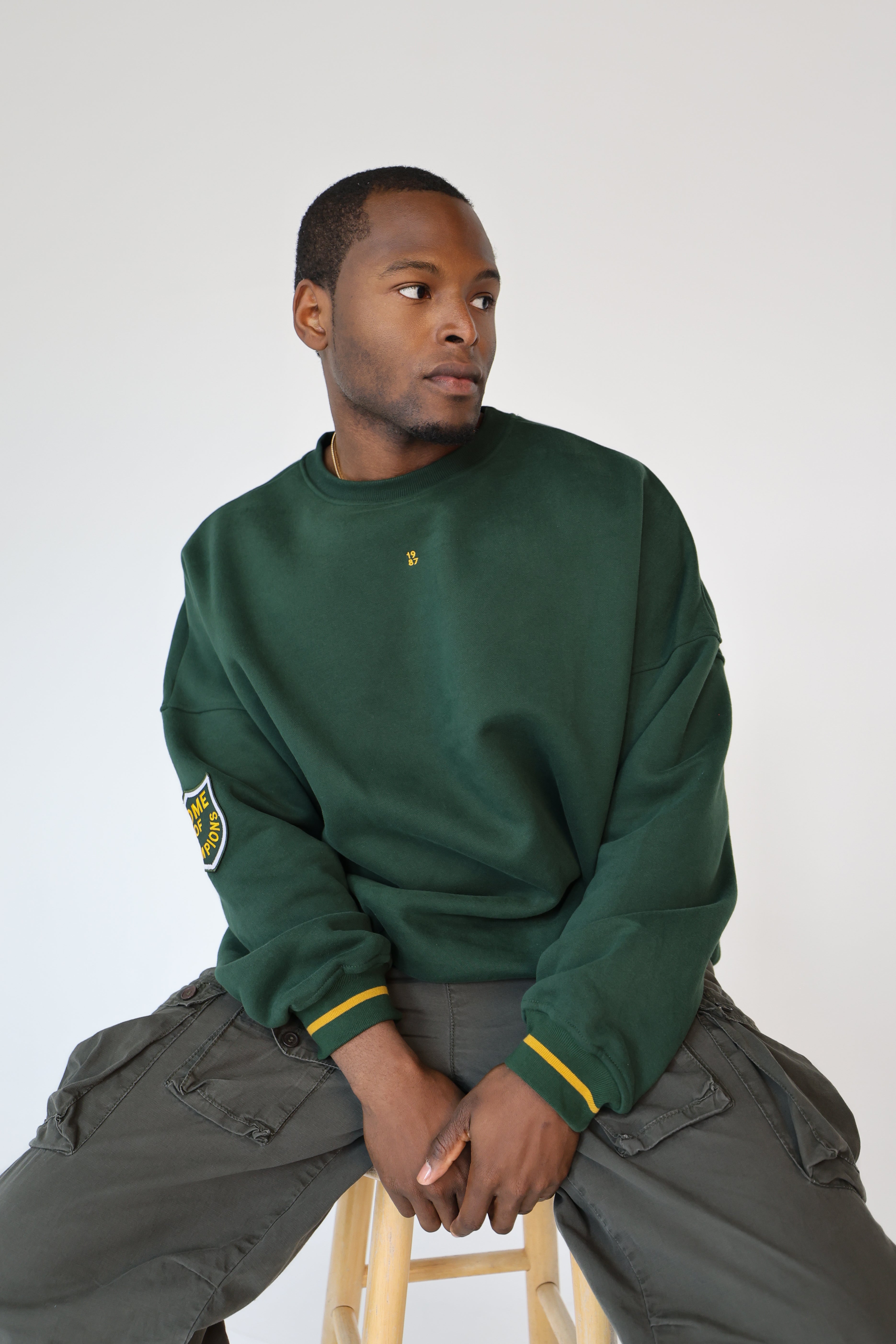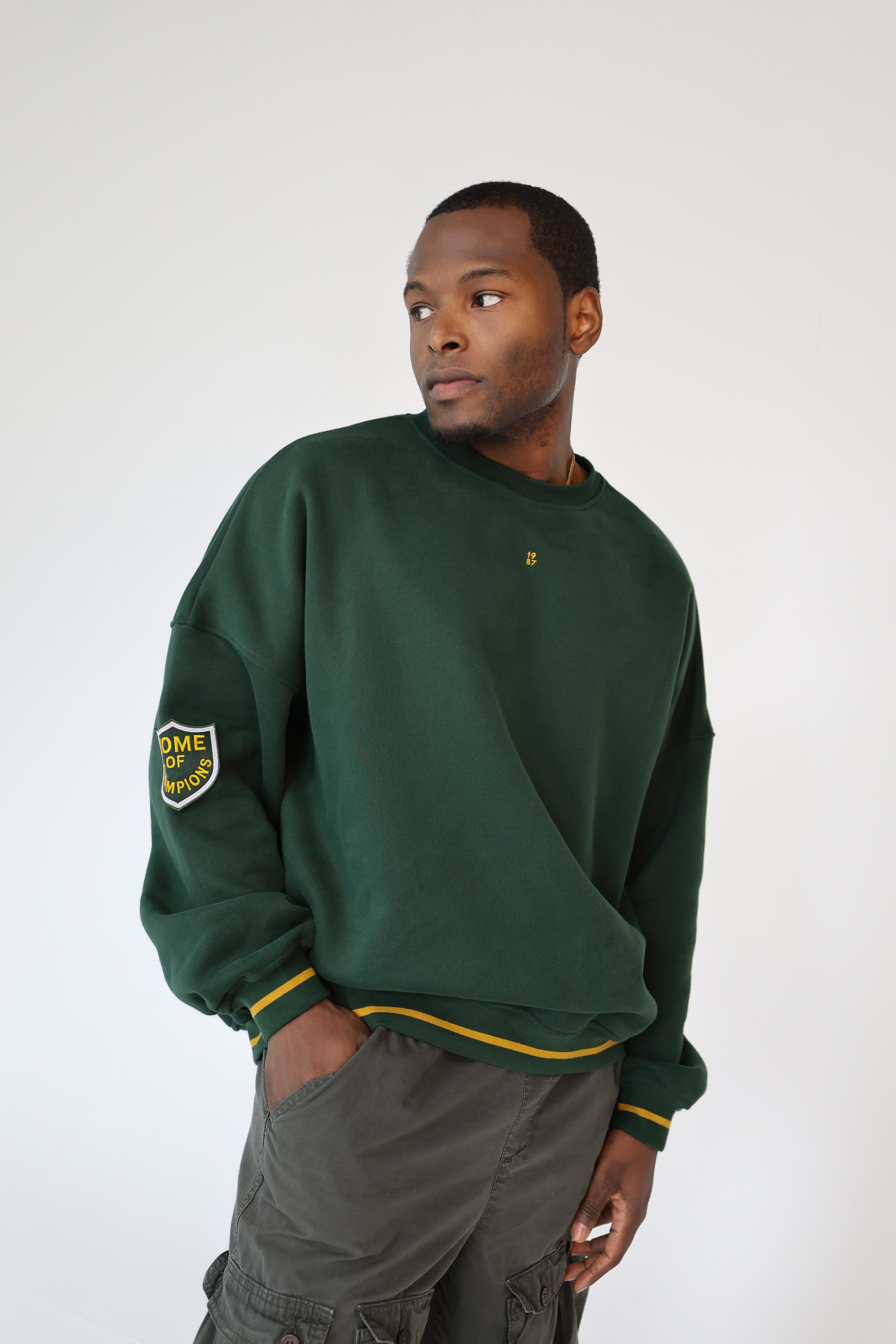 Finished with vintage-inspired contrast striping at the cuffs and our Home of Champions crest patch on the sleeve, this piece brings that classic game-day spirit into an everyday uniform. Minimal up front with an embroidered 1987 chest hit, it’s effortless, timeless, and built to collect.