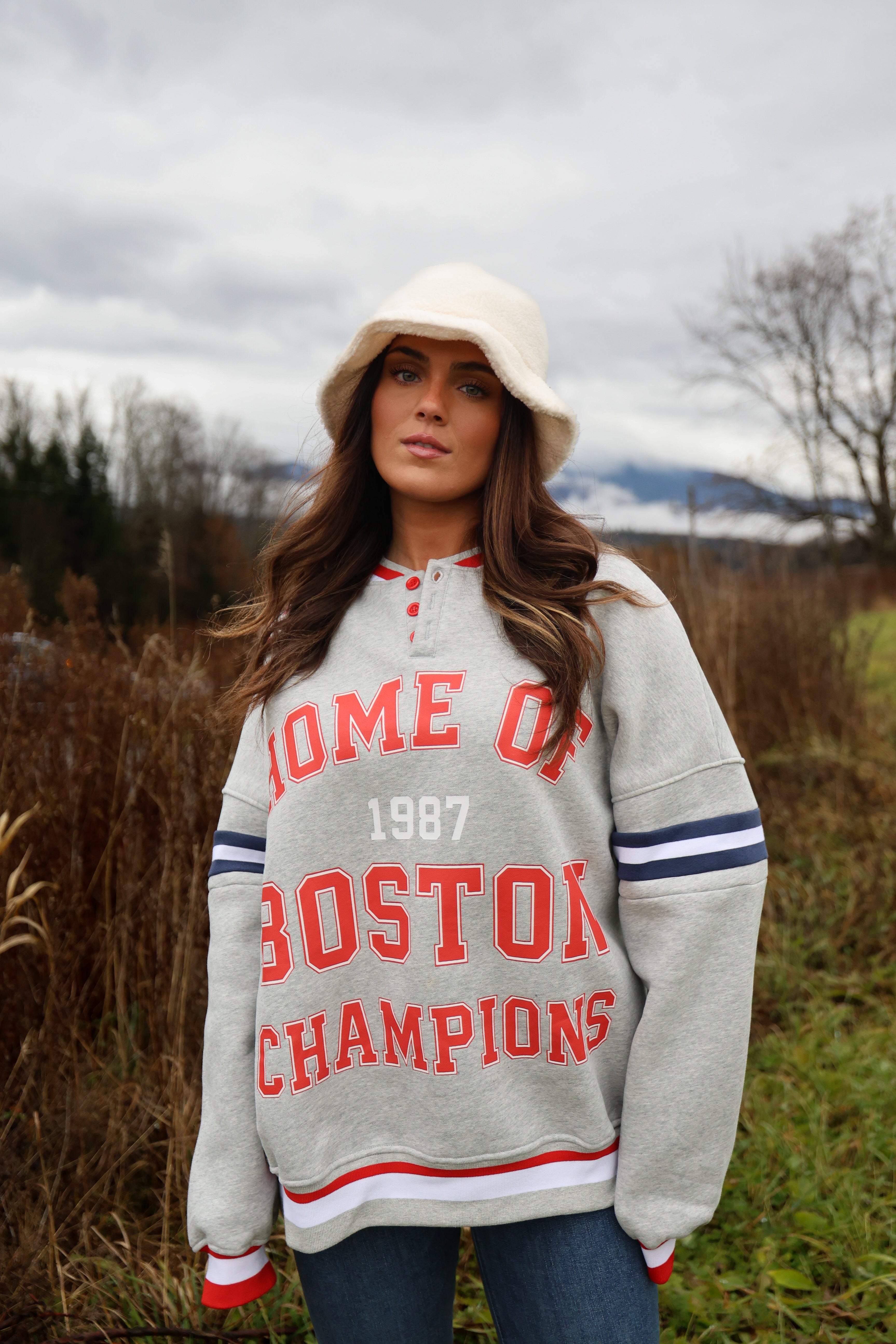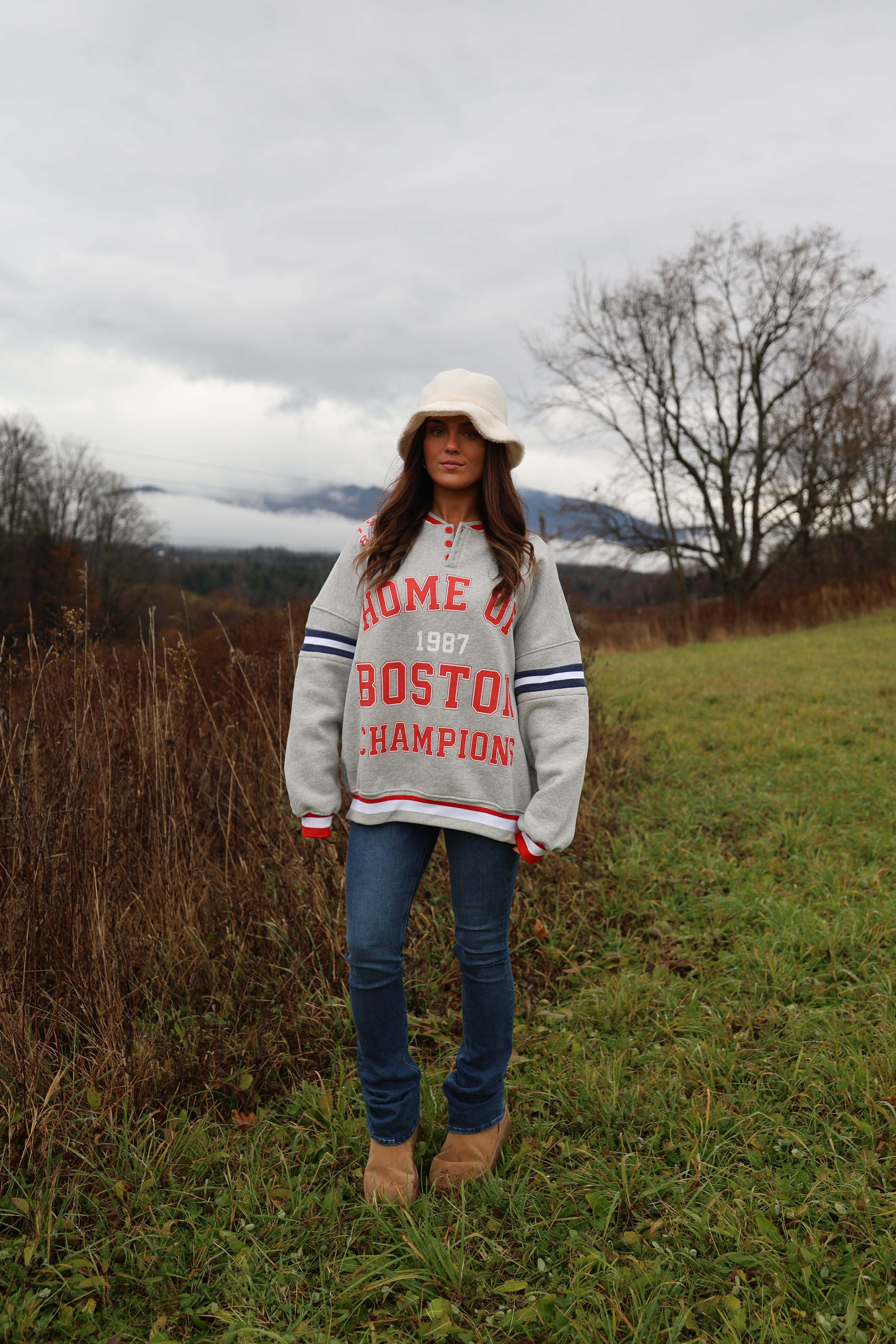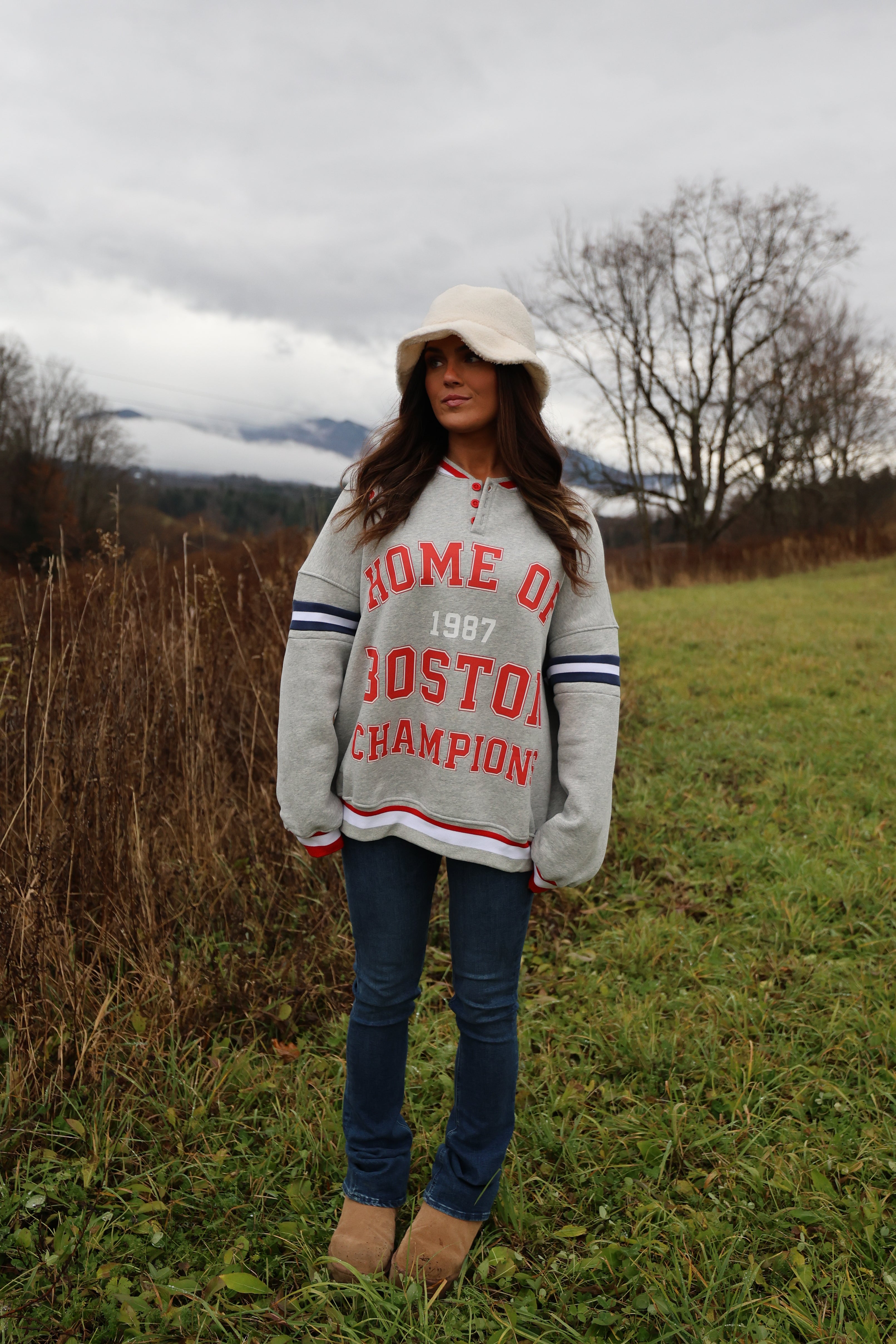Crafted from plush heavyweight fleece, it wears relaxed and easy — think boyfriend-fit meets trophy-sweat. Championship-coded, Boston through and through.