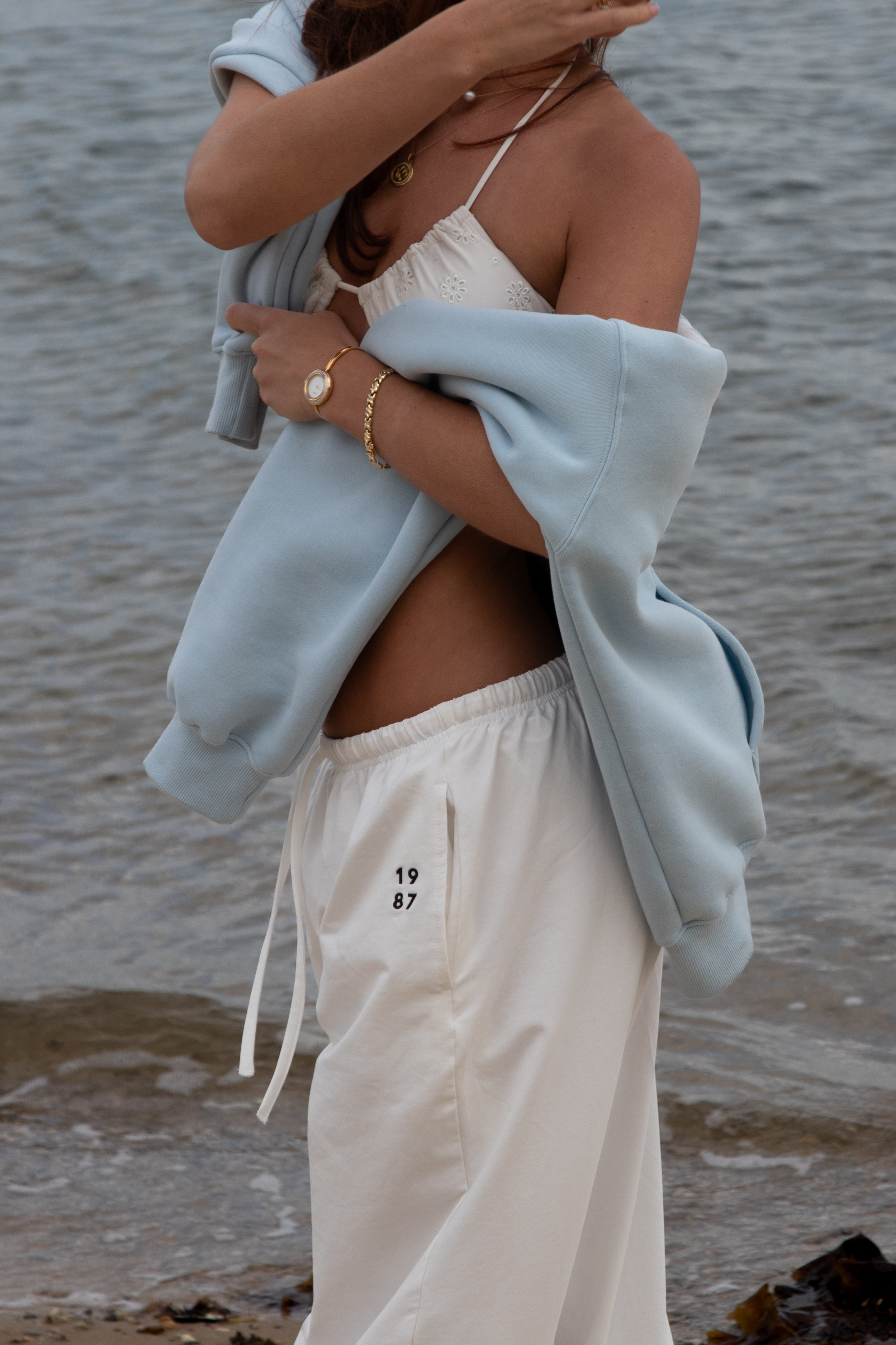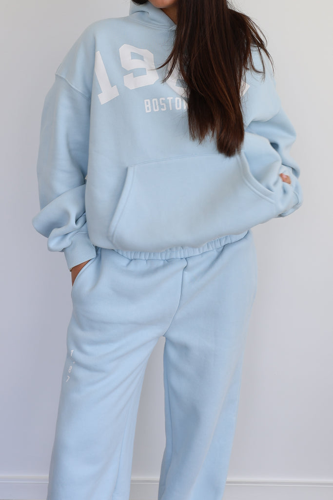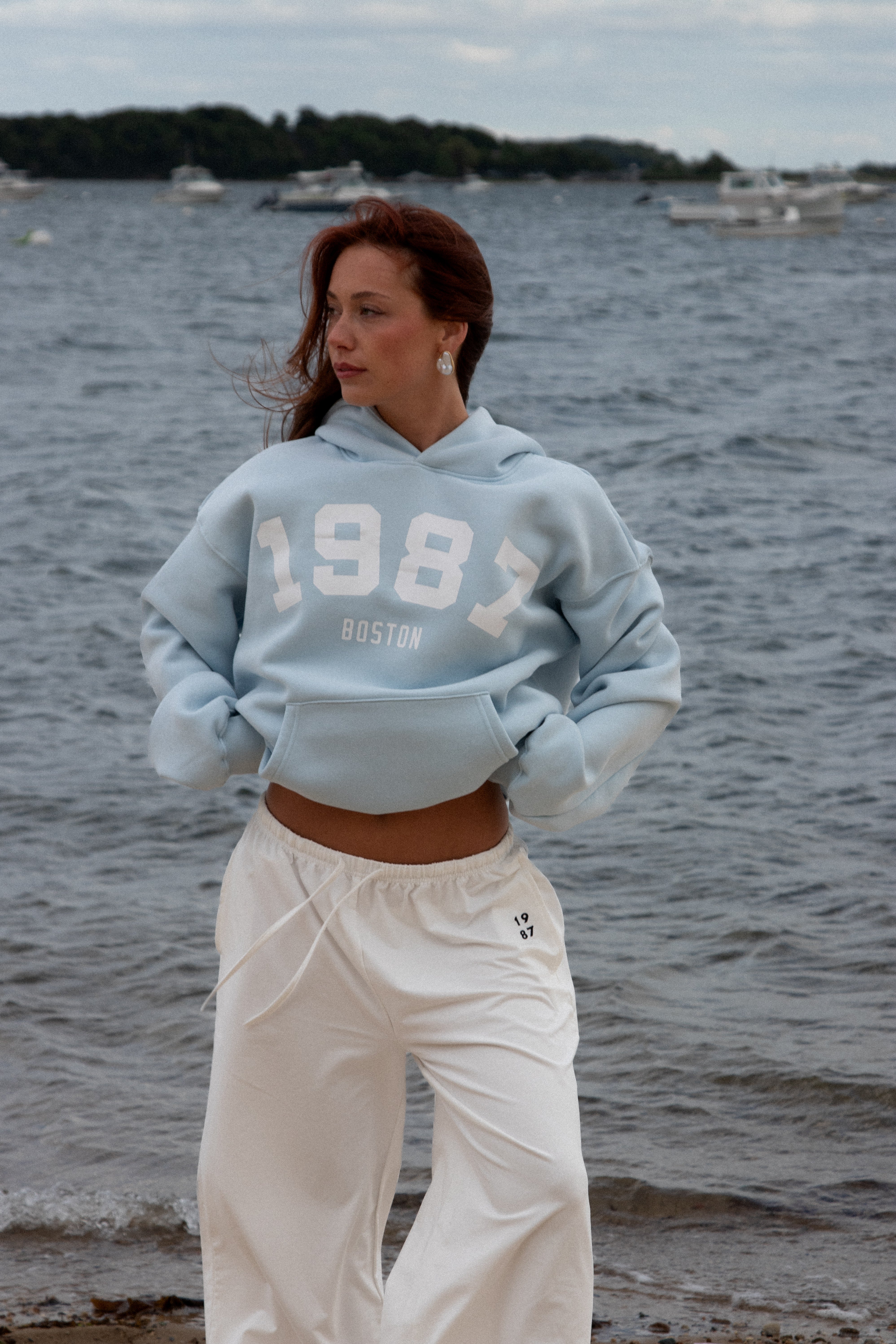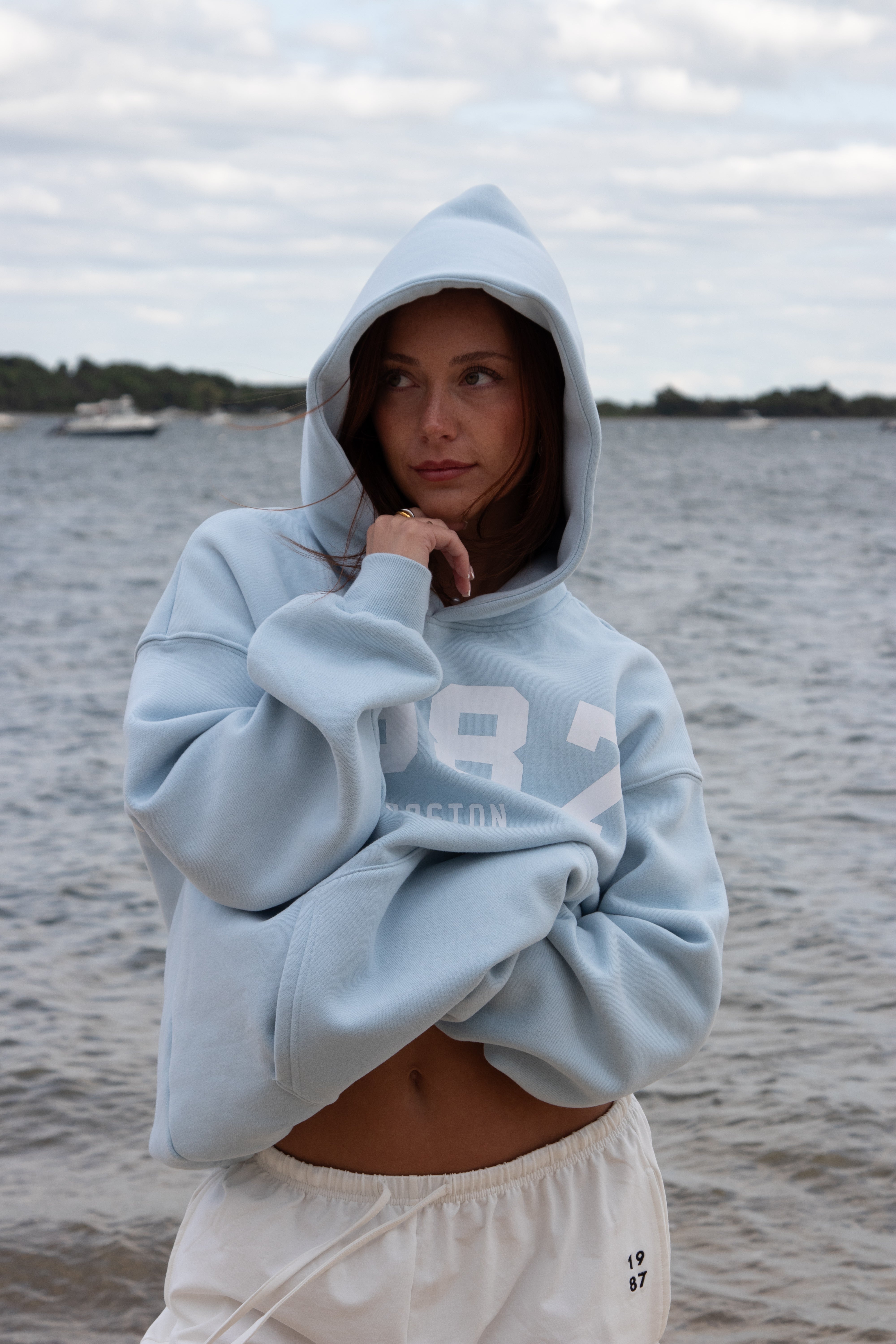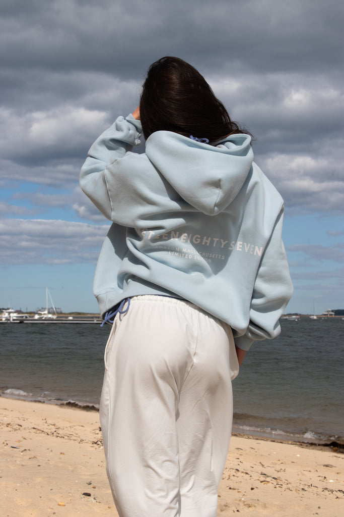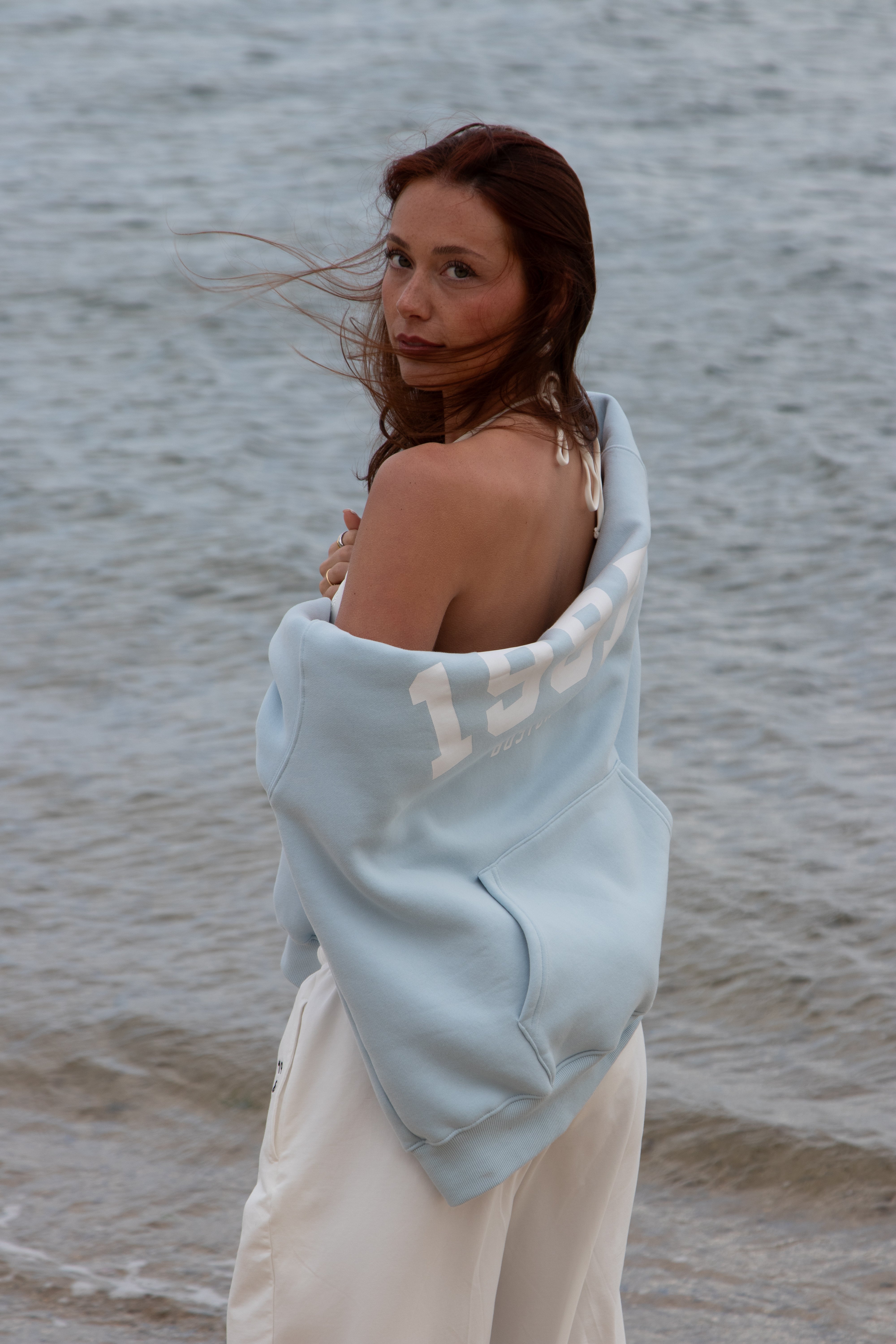 Introducing the Vintage Hoodie in "Coastal" — a summer take on a classic. Inspired by the collegiate hoodies worn by A-list celebrities, we reimagined the look in a light blue hue for a fresh, coastal vibe. With bold block lettering, we made our brand the university—timeless, effortless, and forever vintage.