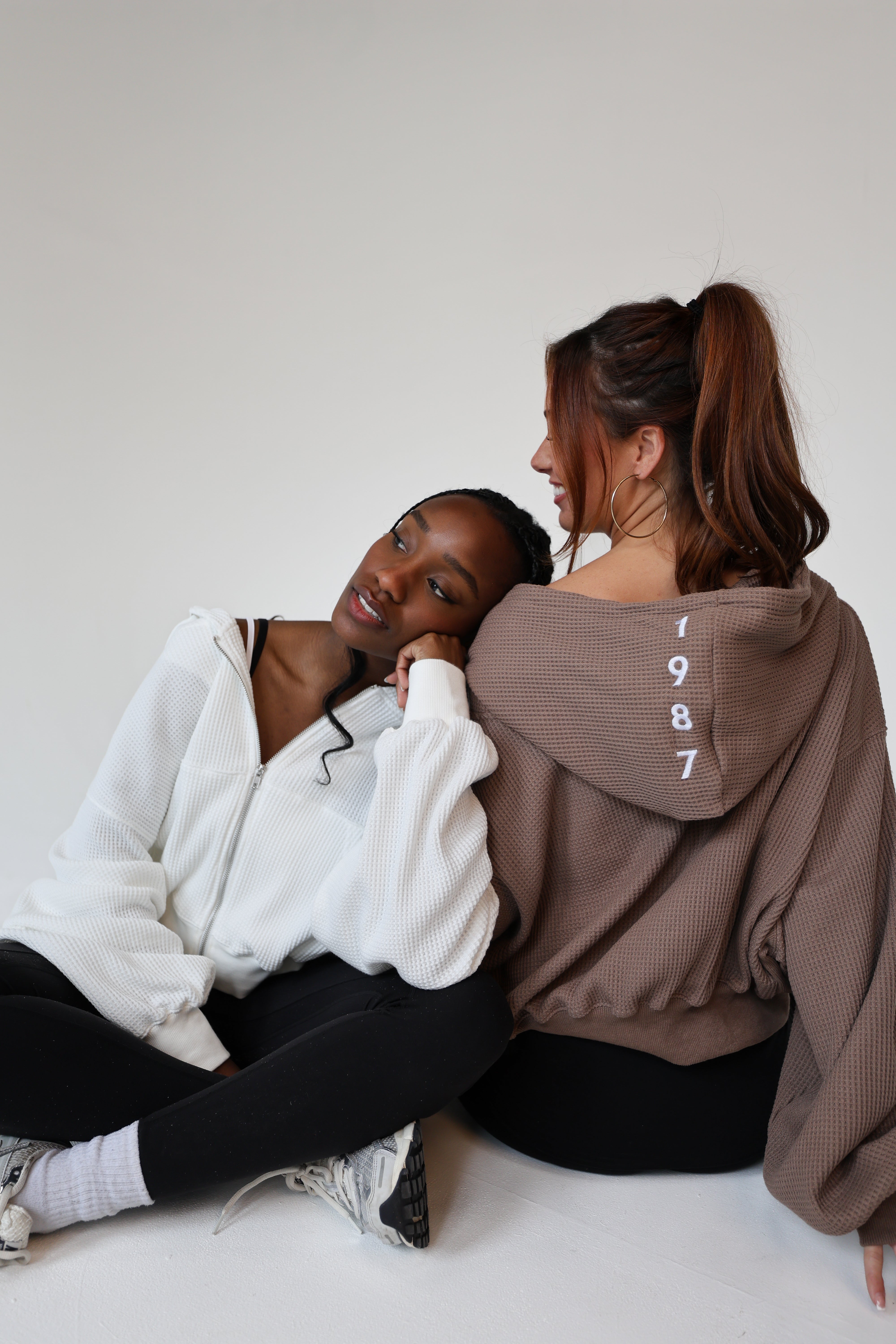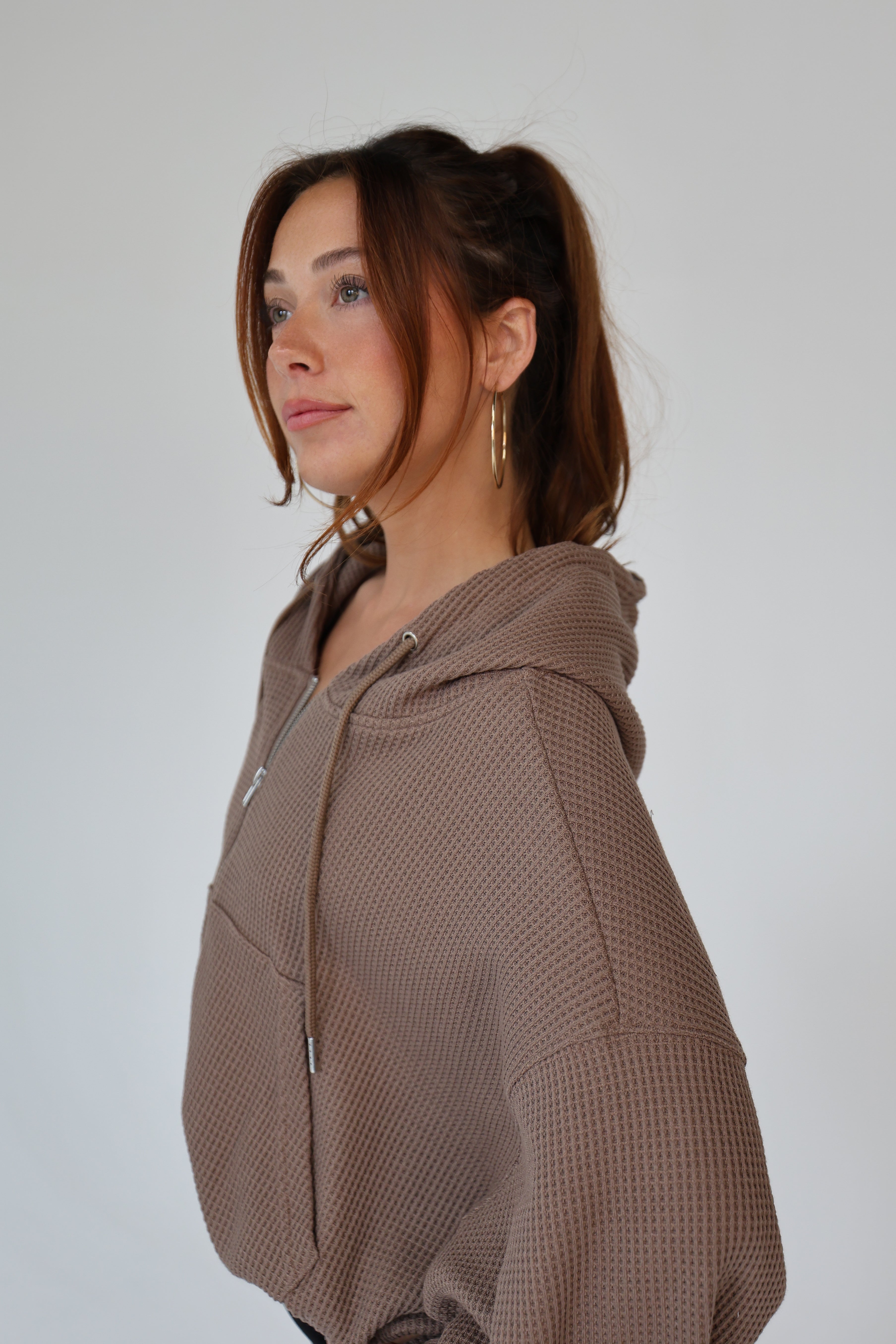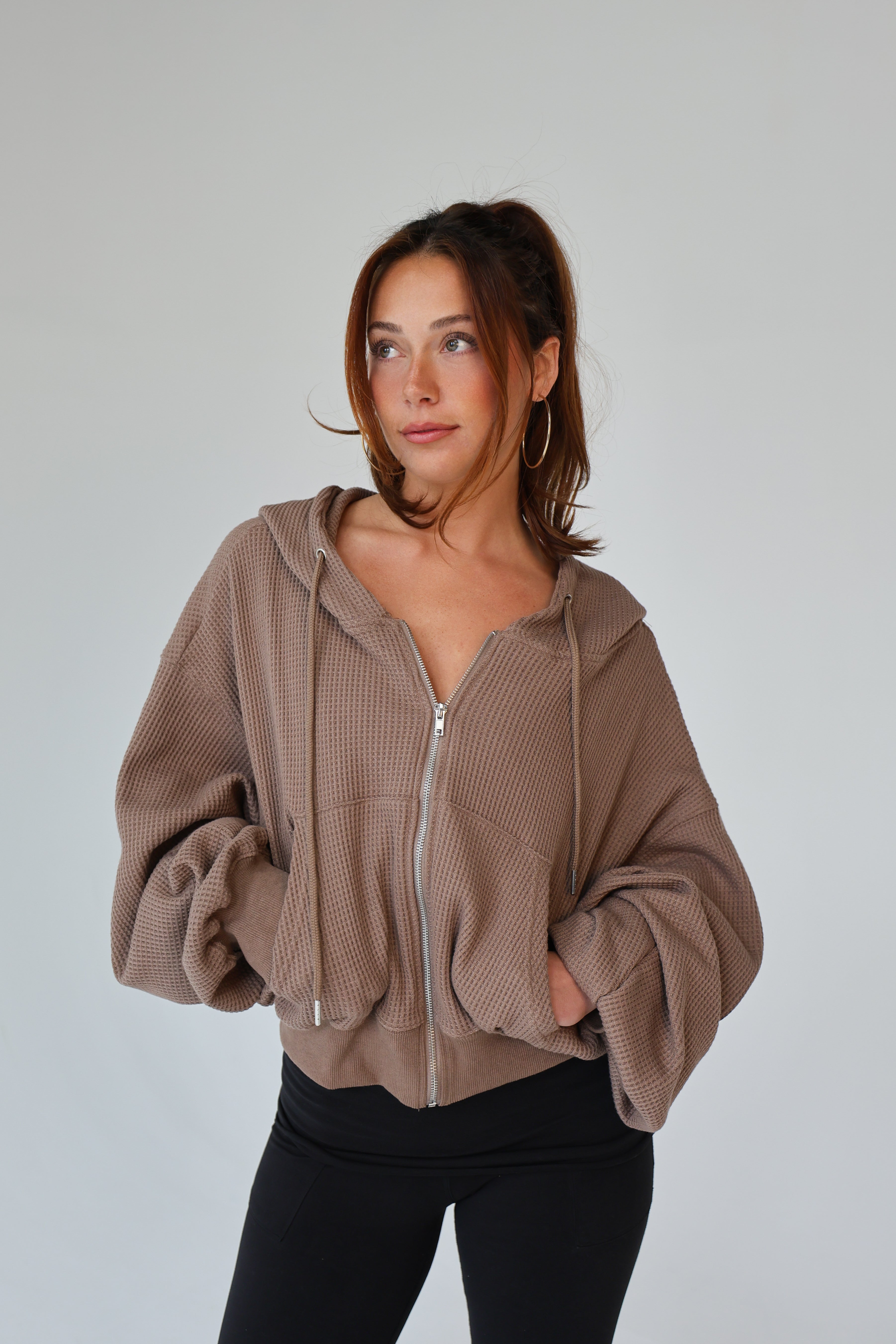 The West End Waffle Zip in "taupe" is crafted from a breathable, mid-weight waffle knit that strikes the perfect balance between softness and structure.