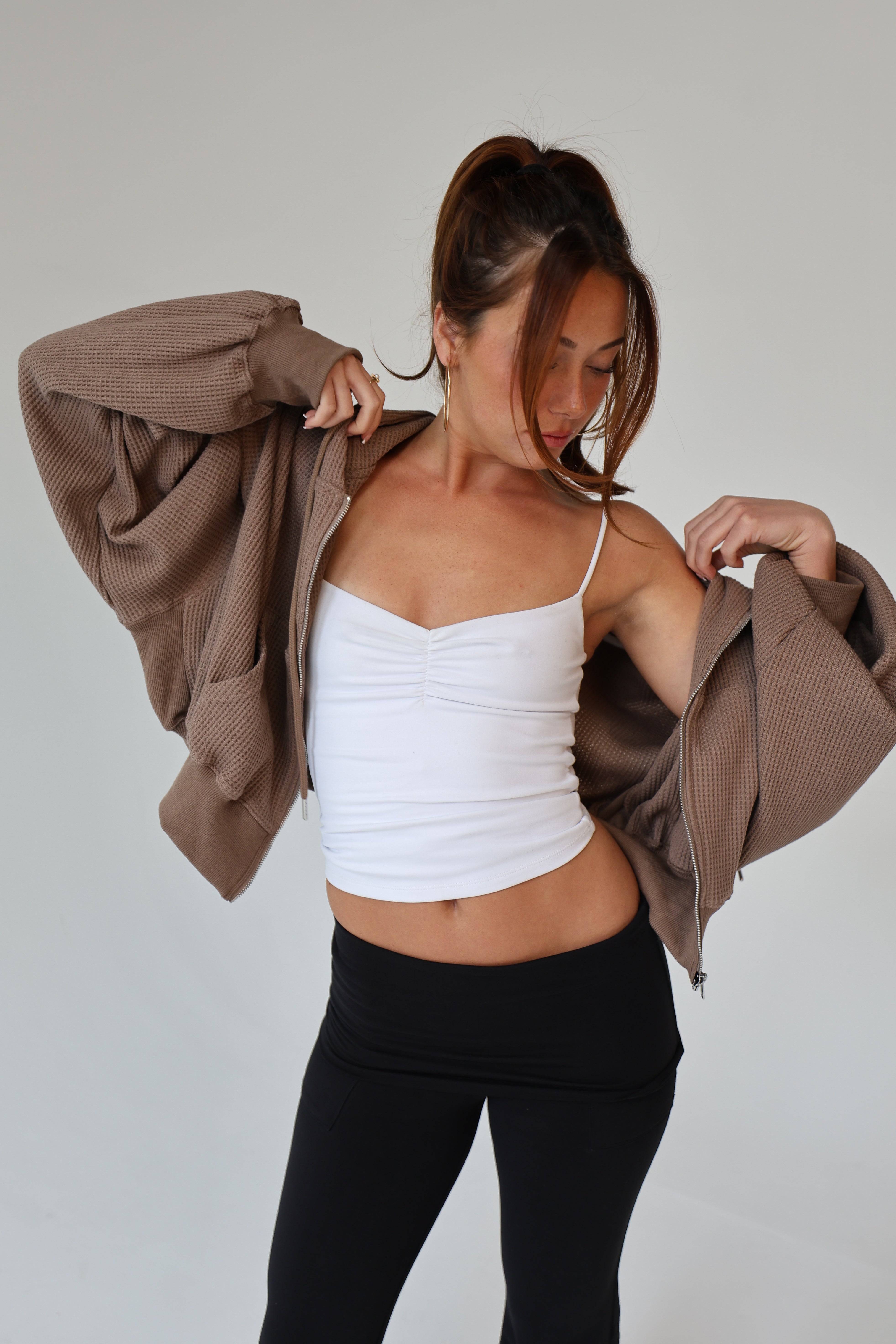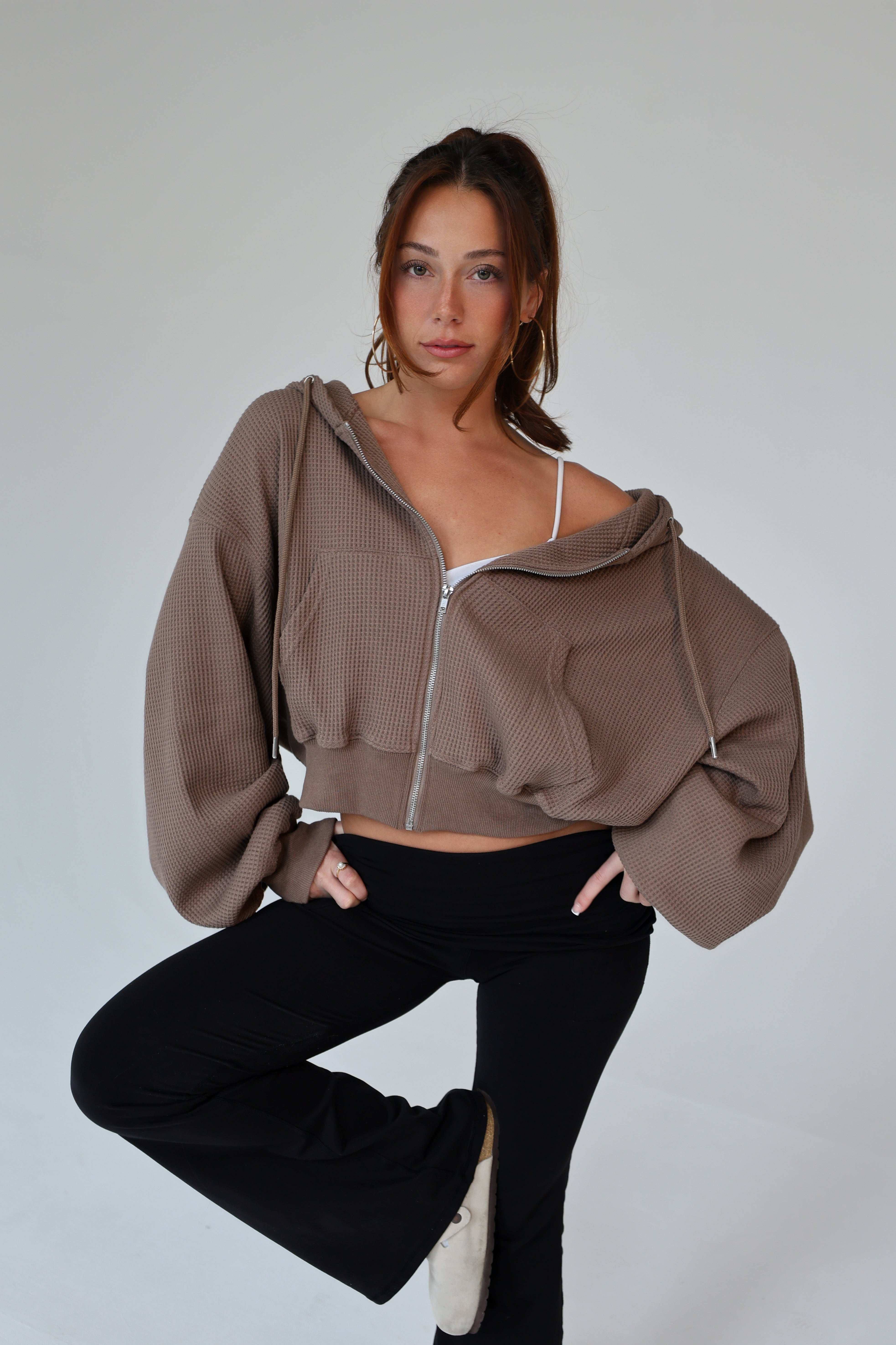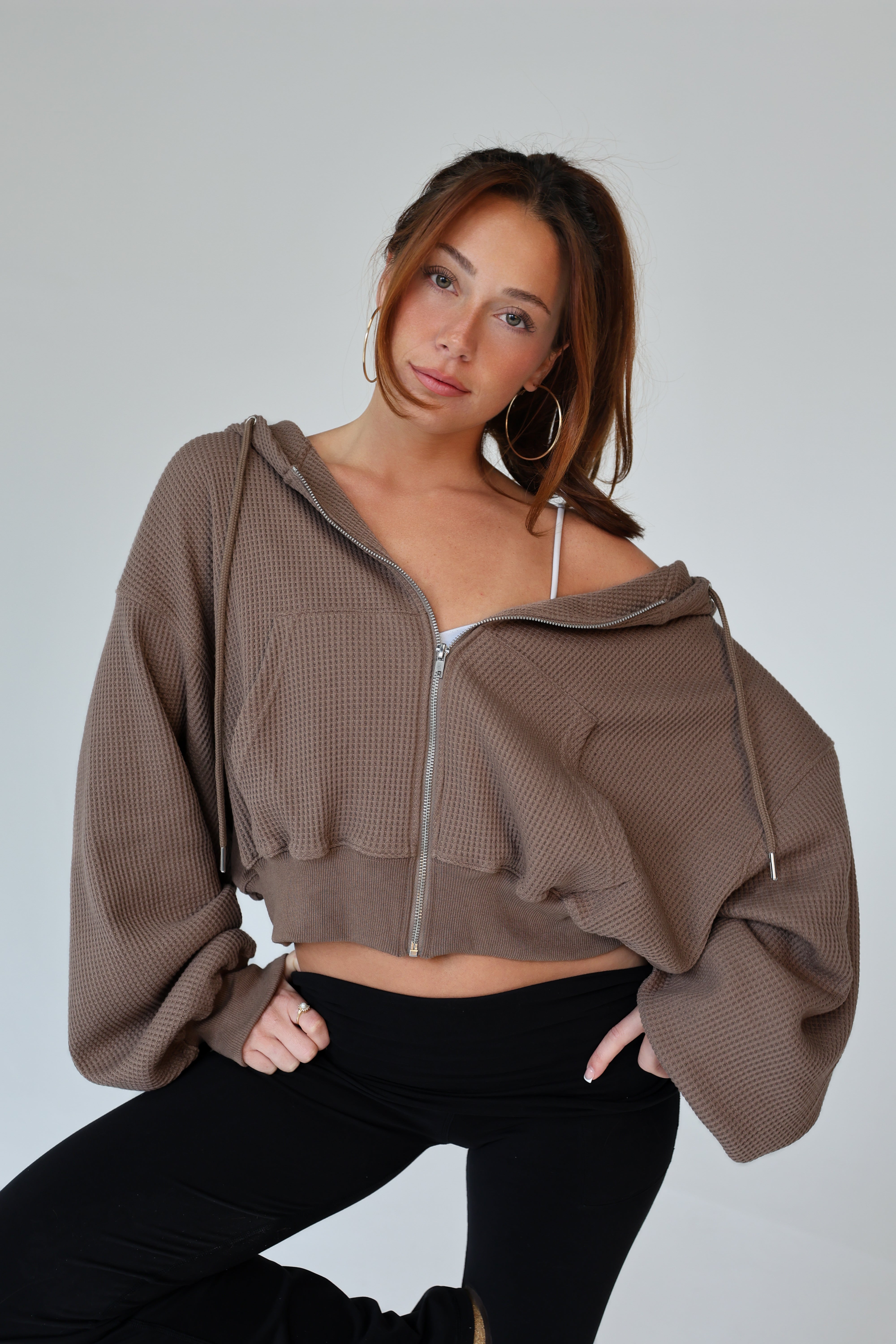 The West End Waffle Zip in "taupe" is crafted from a breathable, mid-weight waffle knit that strikes the perfect balance between softness and structure.
