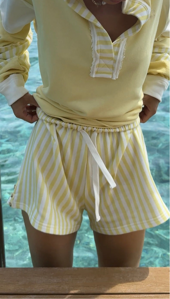 A timeless staple, the Rugby Shorts in "BUTTER YELLOW" are crafted from 100% breathable cotton for an effortless, lightweight feel. Designed for ease and elegance, they feature a relaxed fit, elastic waistband, and subtle embroidered detailing that nods to understated luxury. Part of our Resort Collection and {LUXURY LINE}, they’re made for sun-soaked days and coastal escapes.
