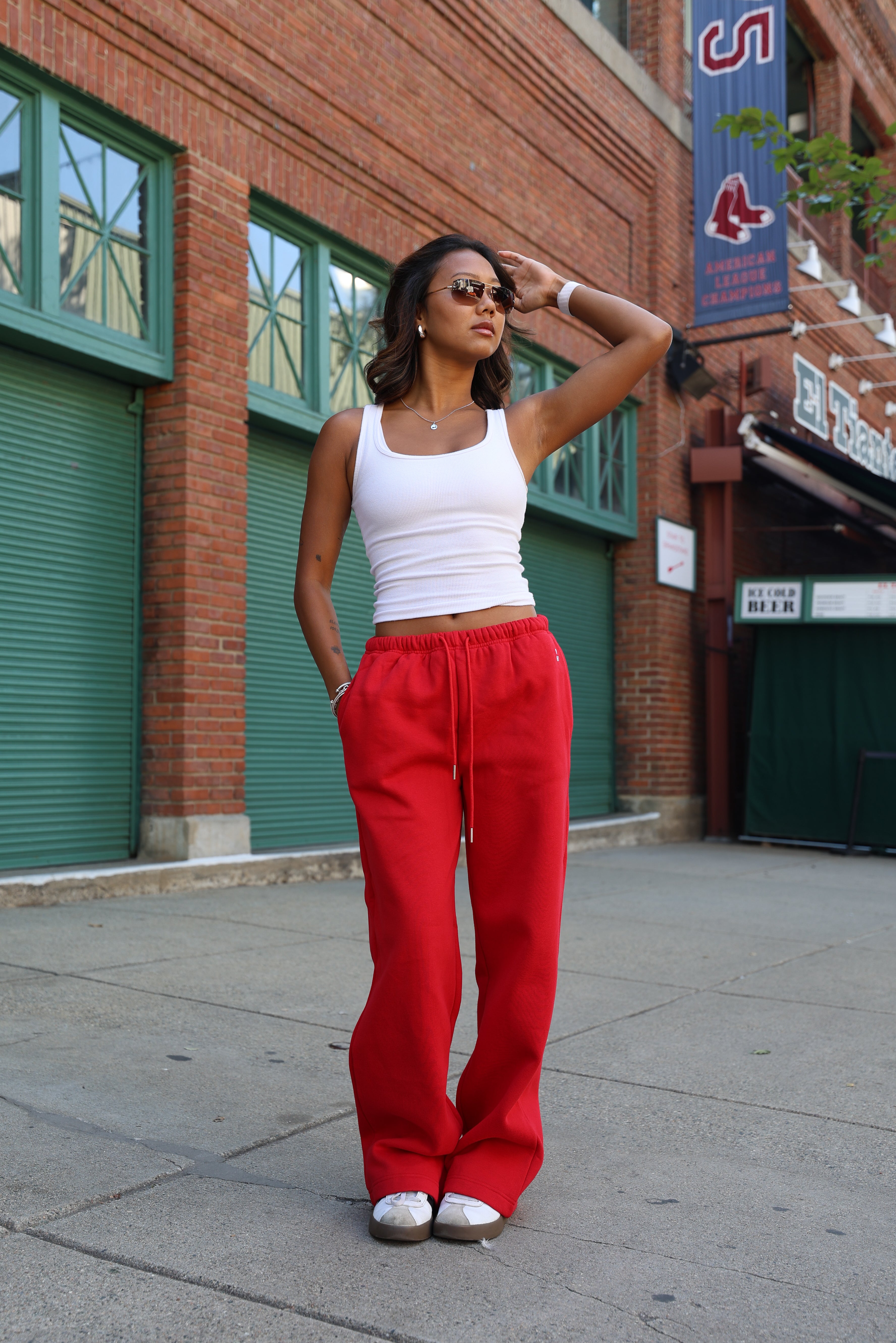 The ‘87 sweatpants in “cherry” is redefining the modern loungewear silhouette. Designed with a new, perfected fit, this elevated essential delivers unparalleled comfort while maintaining a sleek, tailored aesthetic.