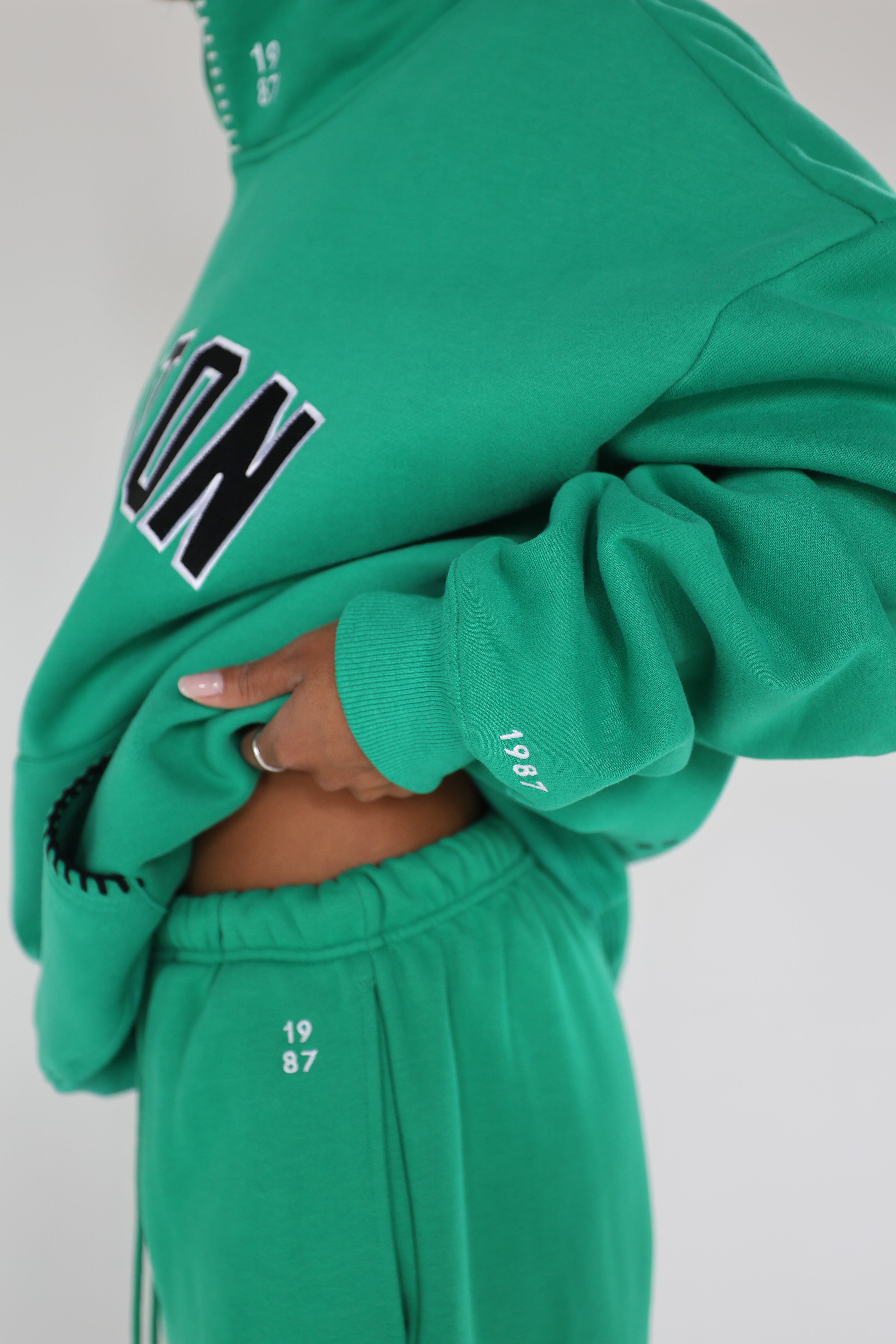 The ‘87 Sweatpant in “Clover” is cut from our signature ultra-soft fleece, offering an effortless drape and laid-back refinement. Designed with a discreet adjustable waistband, straight-leg silhouette, and just-right weight, it delivers all-day comfort perfect for game day.