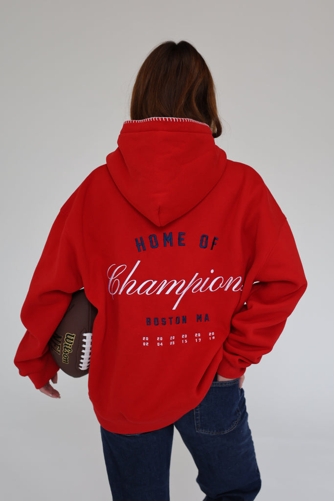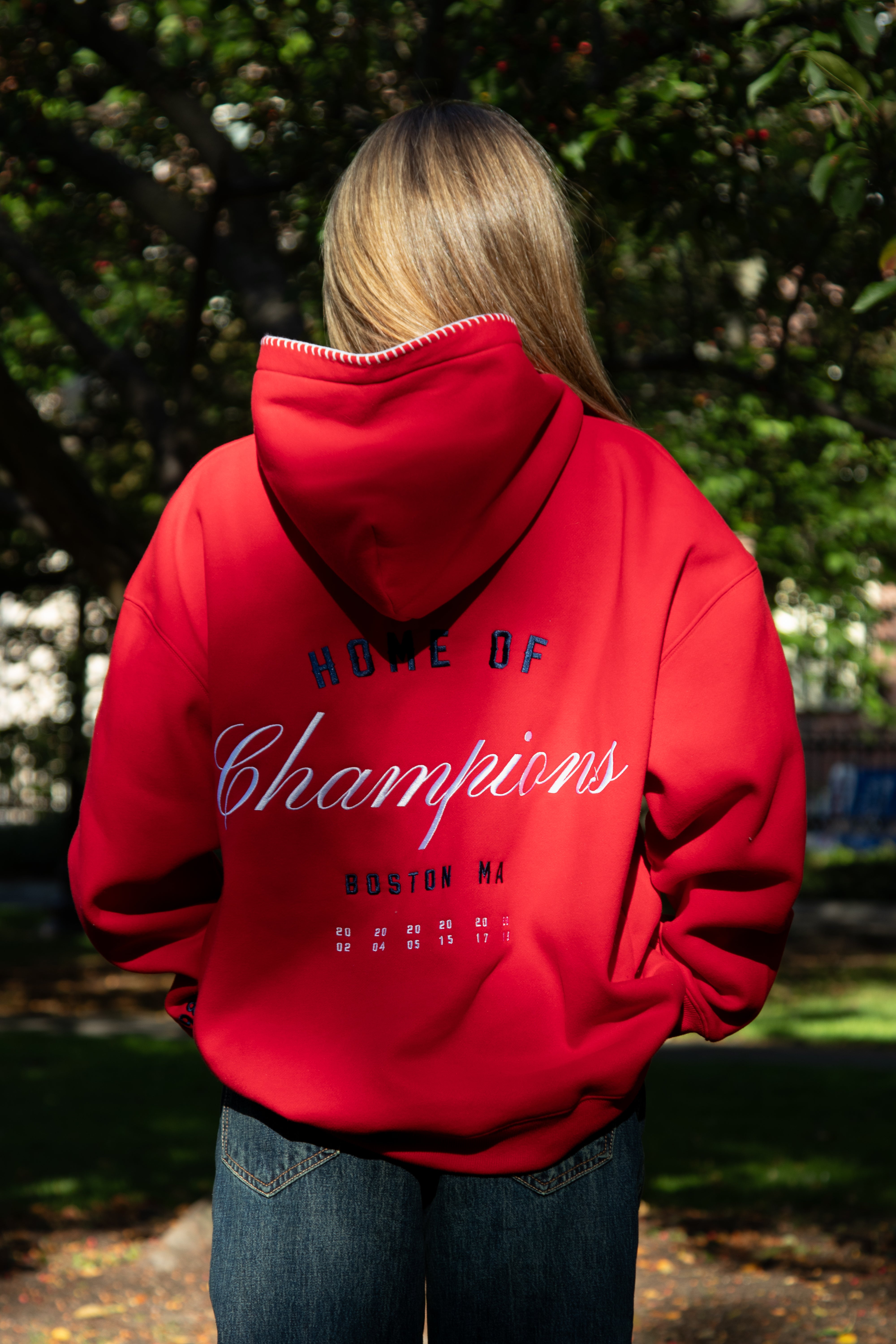 Boston’s sports legacy is unrivaled — 40 championships and counting. We celebrate that winning tradition with the Home of Champions Banner Hoodie in rich cherry red.