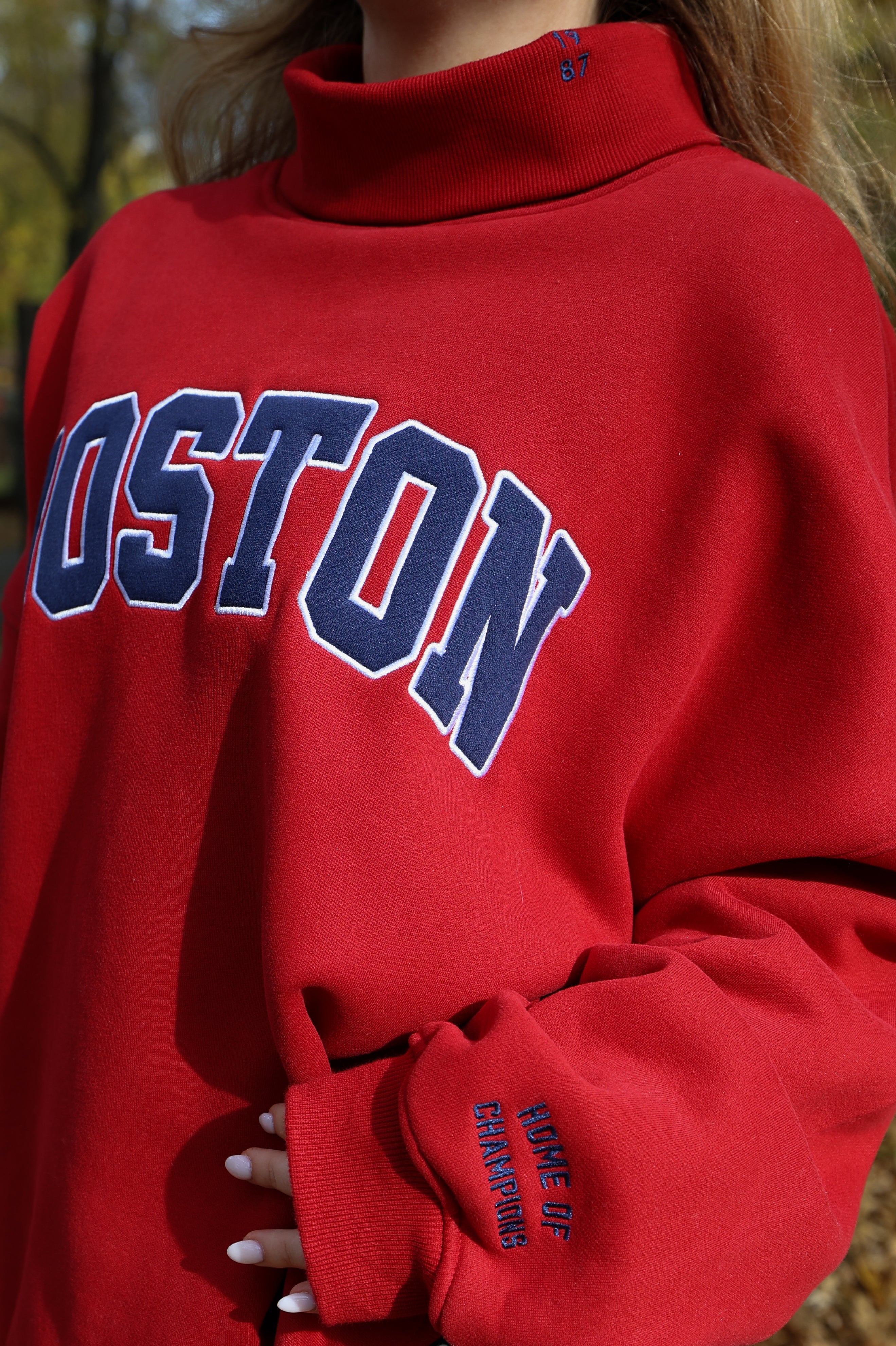 The cherry red tone contrasts with bold varsity-style lettering — a nod to the city’s winning legacy — while subtle embroidery at the cuff and neckline adds our signature 1987 touch.