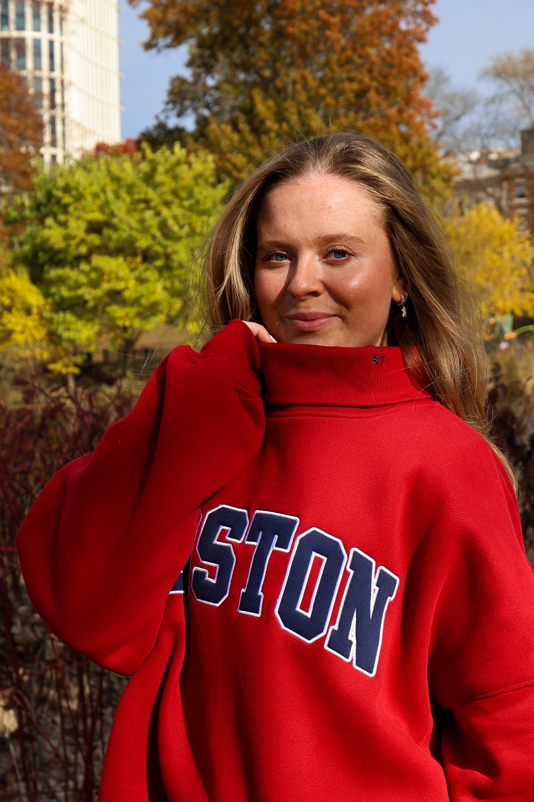 Inspired by Boston’s effortless cool, the City Rollneck in Sox brings a modern, collegiate edge to your everyday rotation. Cut from our signature heavyweight cotton-blend fleece, this sweatshirt features a structured mock neckline and dropped shoulders for a relaxed yet elevated silhouette.