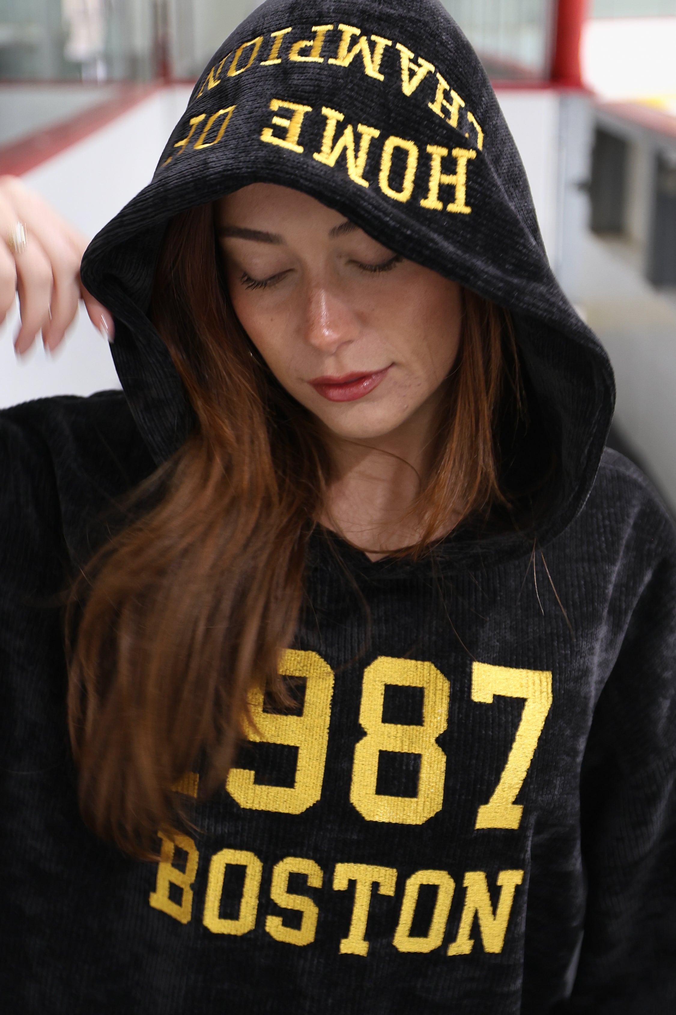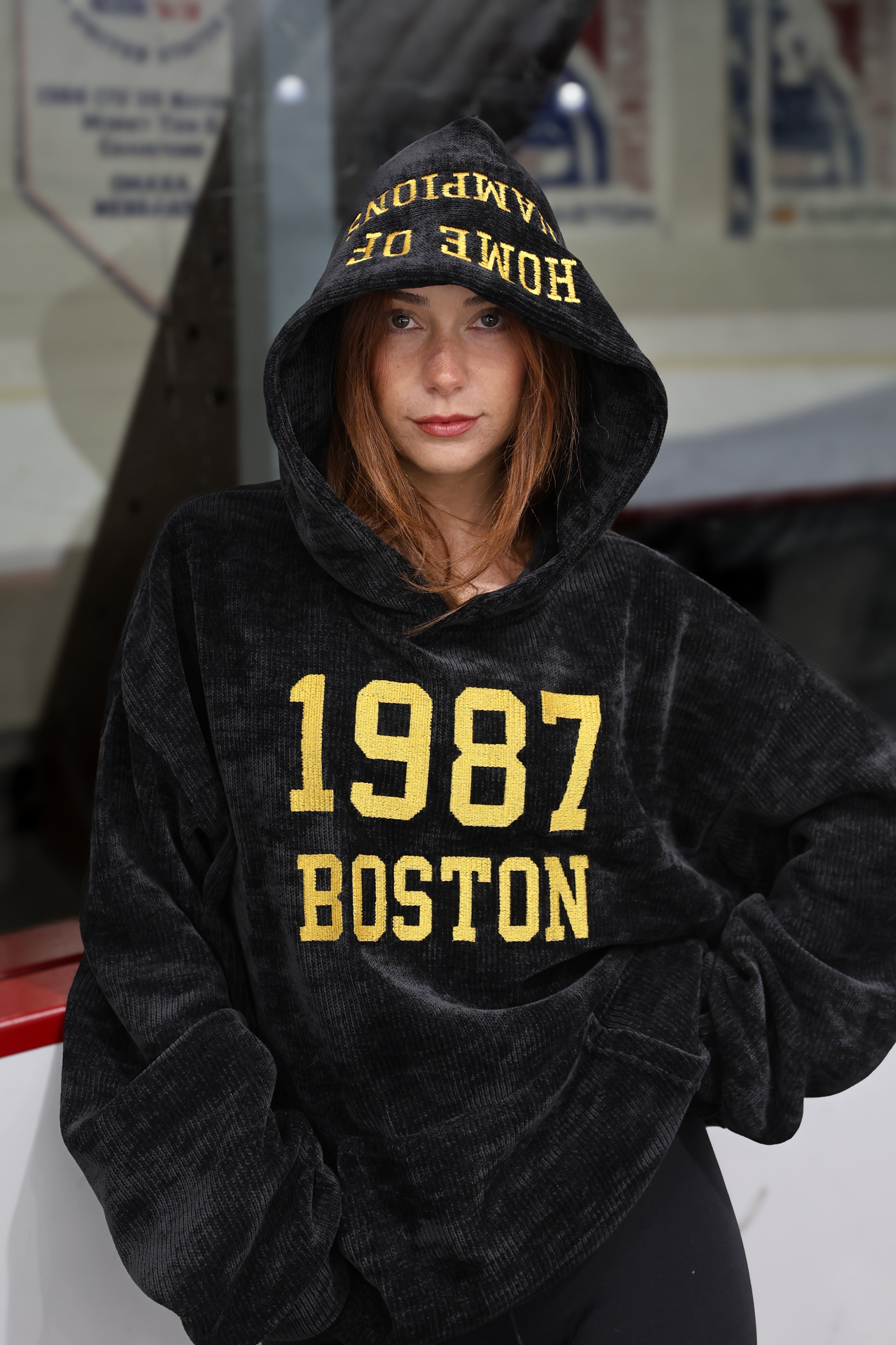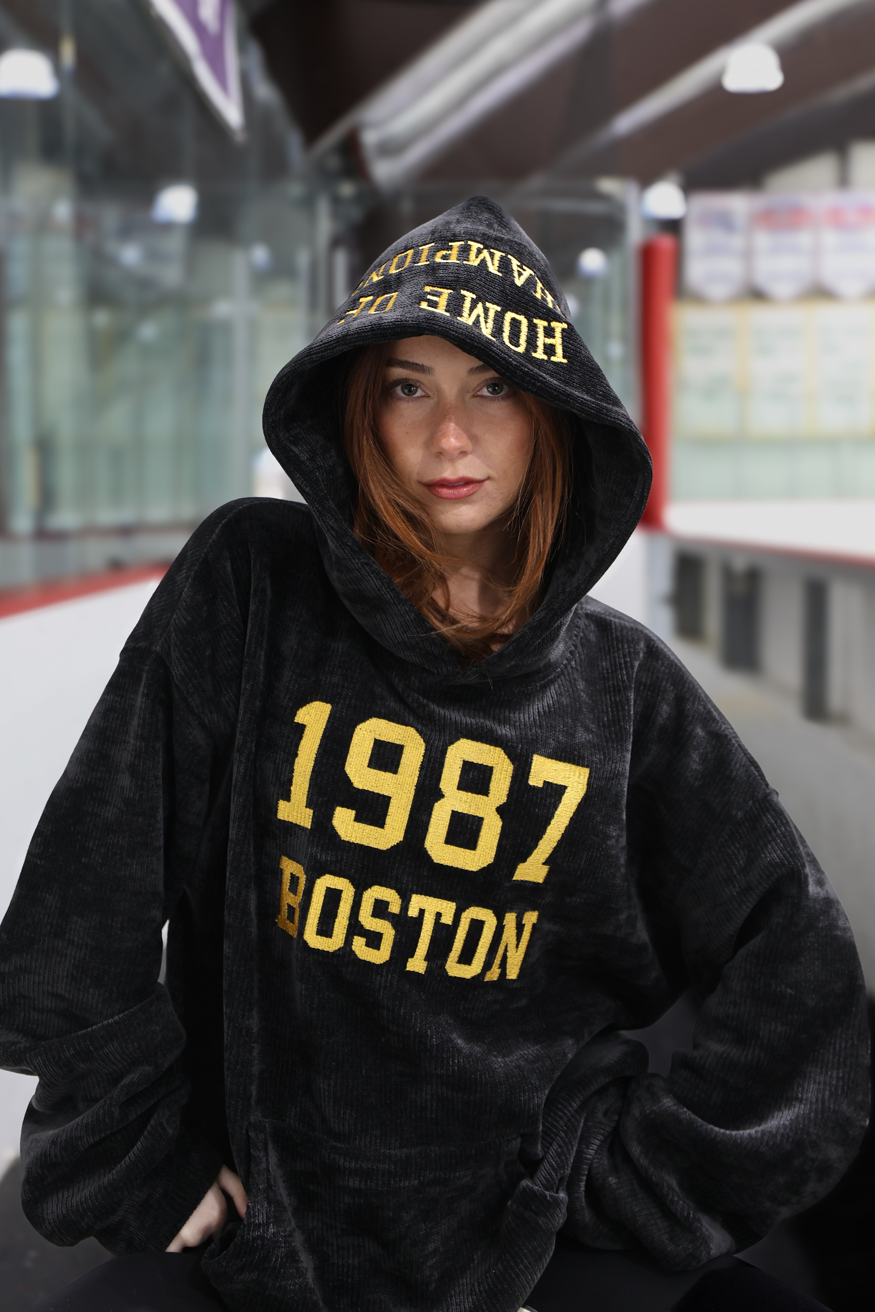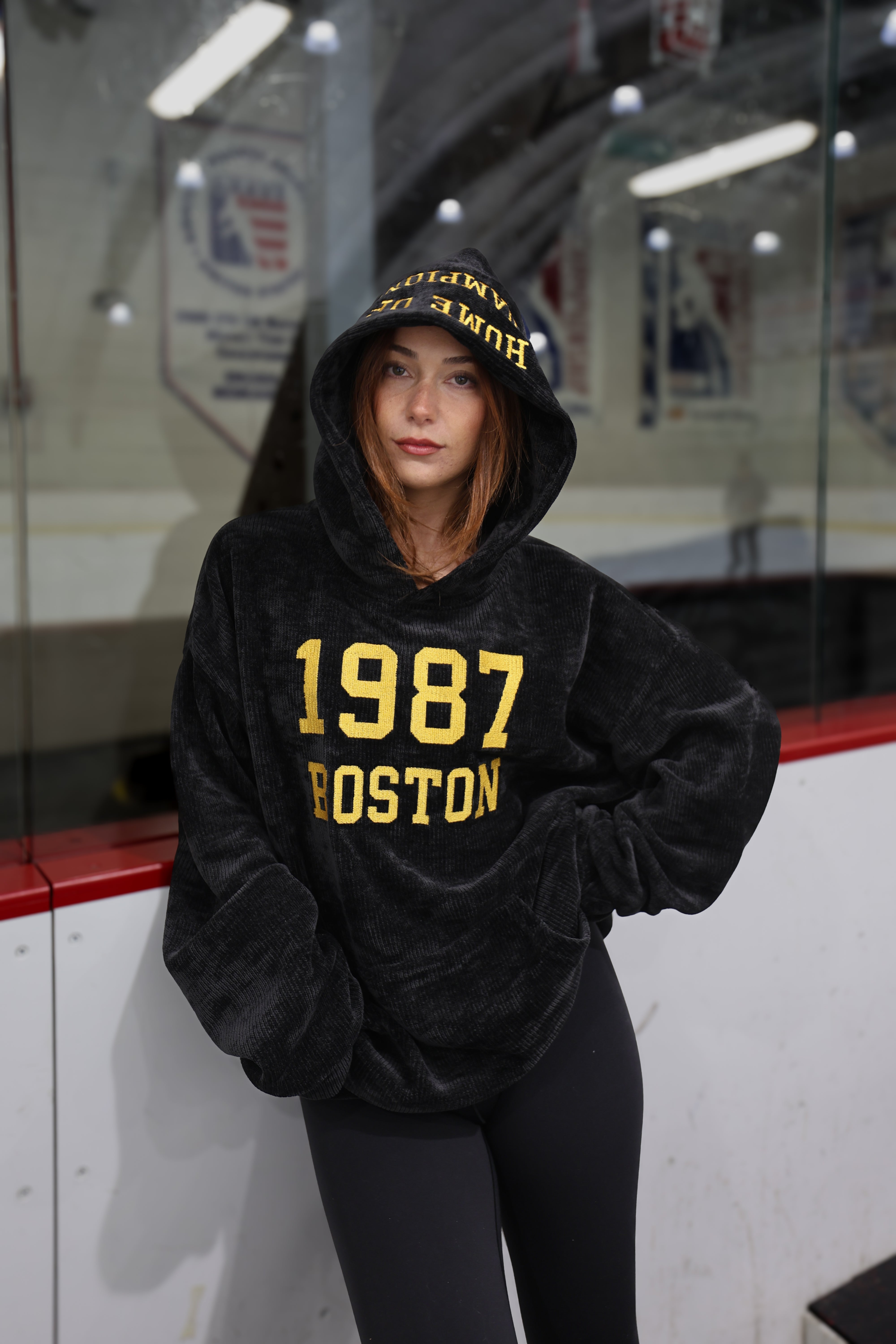 Finished in deep blackout with tonal dimension and varsity detailing inspired by rink-side classics.