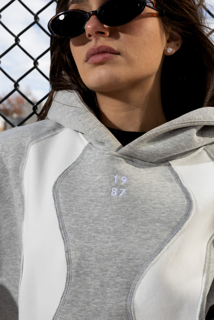 The Ripple Hoodie in Stone/White blends sport-driven design with an architectural silhouette. Heavyweight fleece meets curved paneling that contours the body in a way that feels both dynamic and refined — a signature 1987 detail inspired by motion, momentum, and modern athletic form.