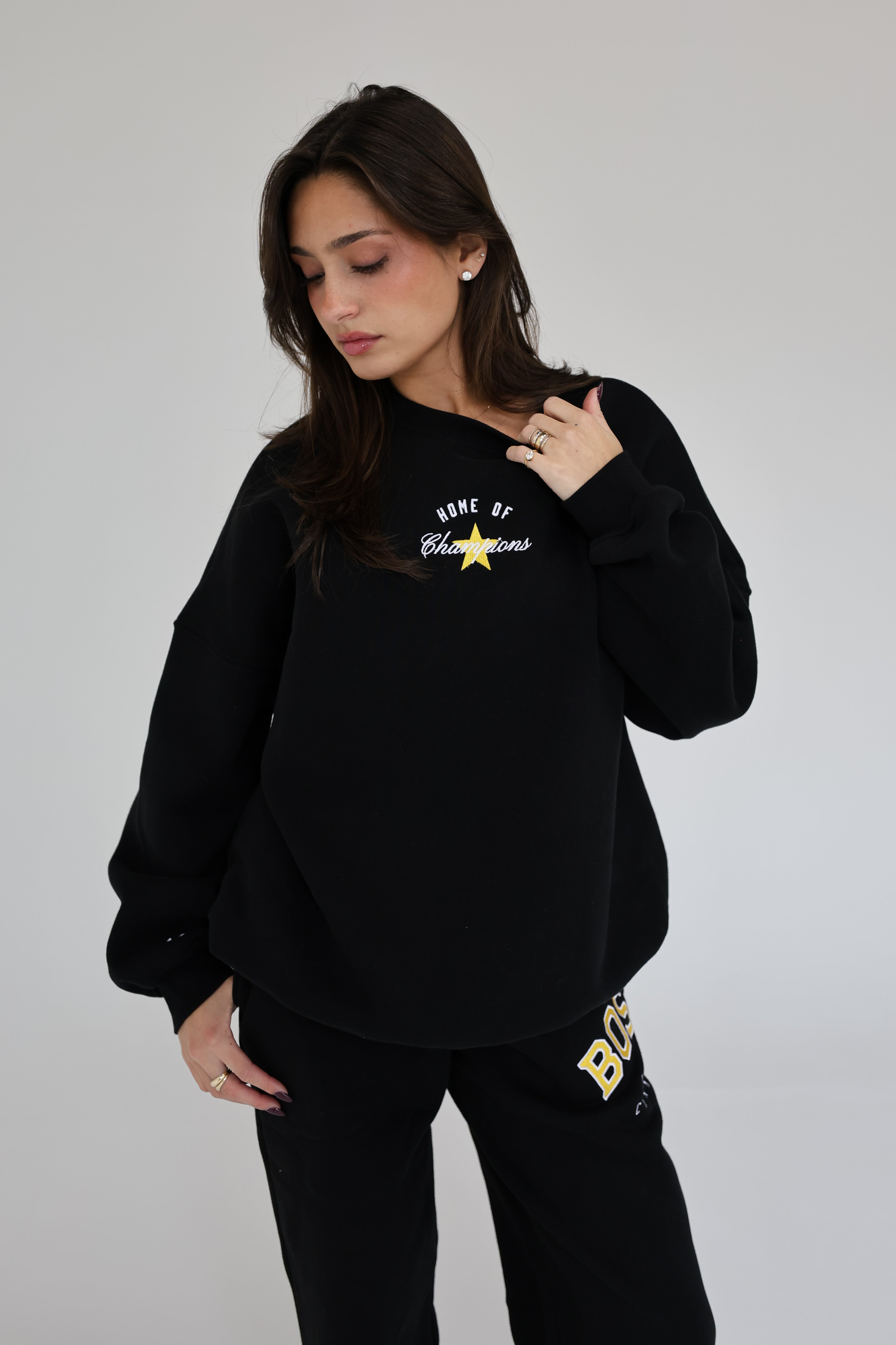 Meet the All-Star Crew in Blackout — a statement of quiet confidence and championship energy. Inspired by Boston’s golden legacy, this heavyweight fleece crew balances structure and softness with a relaxed, vintage-athletic fit.