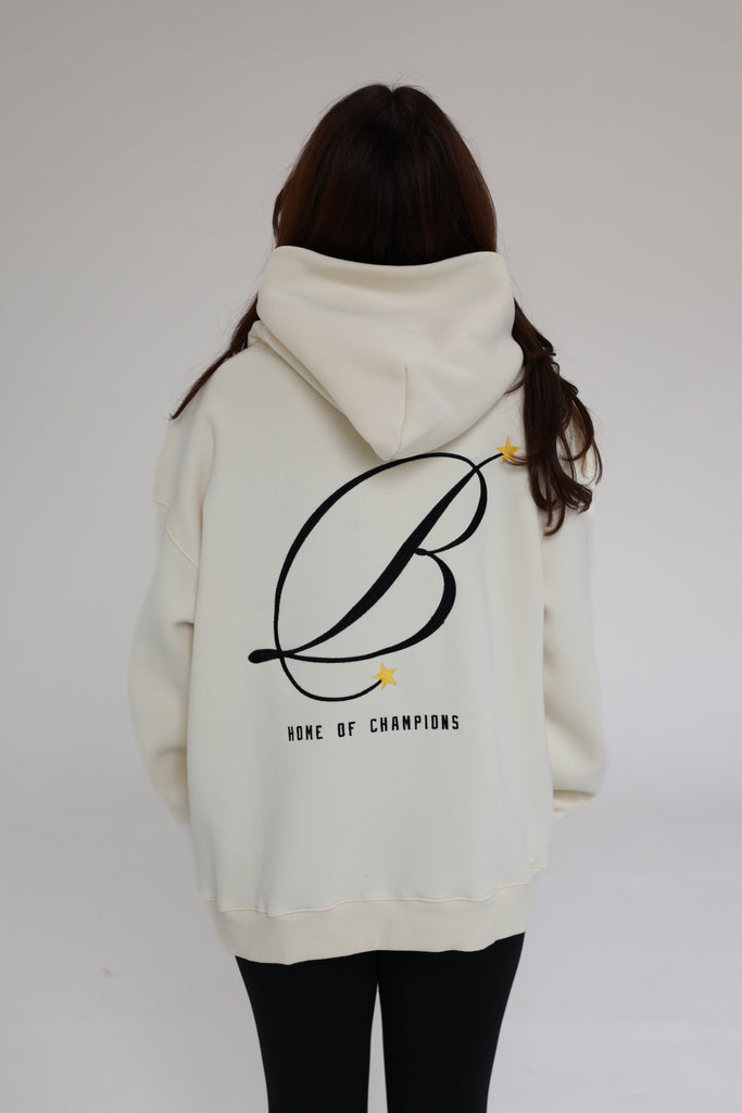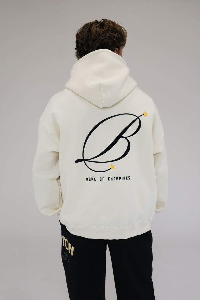 Cut from heavyweight, ultra-soft fleece with an intentionally oversized, vintage-fit silhouette, this piece blends retro athletic energy with everyday luxury. The back features our signature “B” Home of Champions insignia — a graphic that symbolizes Boston’s unbeatable spirit and the timeless drive of its fans.
