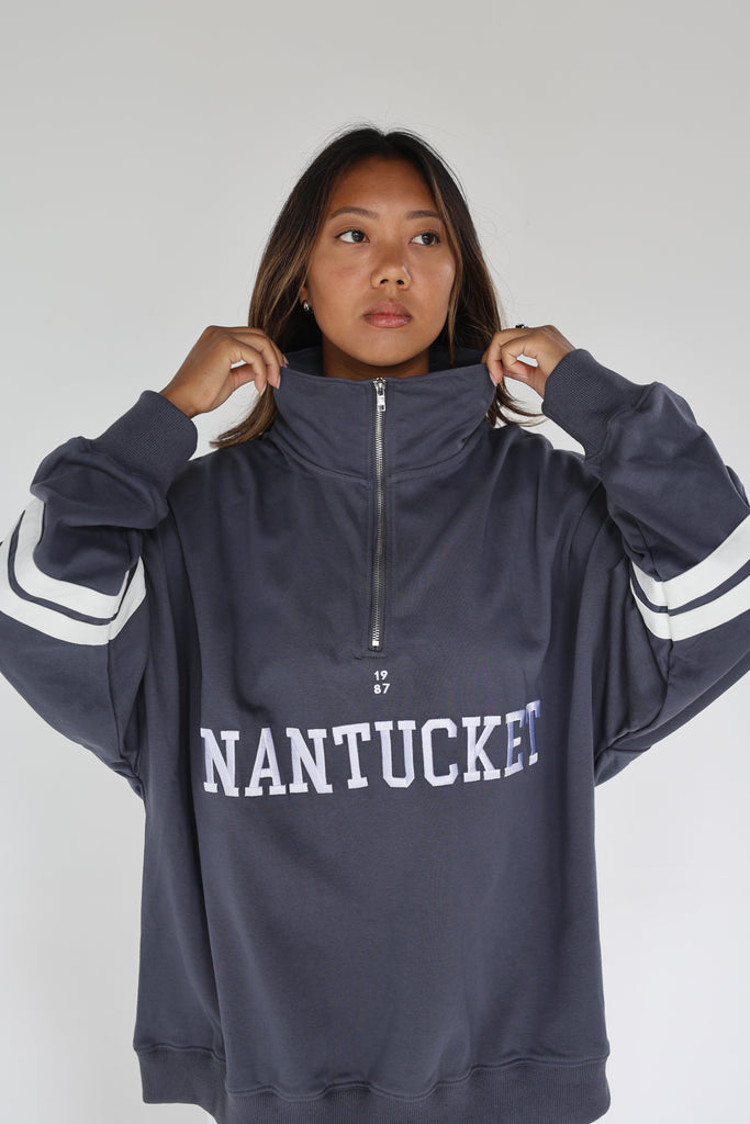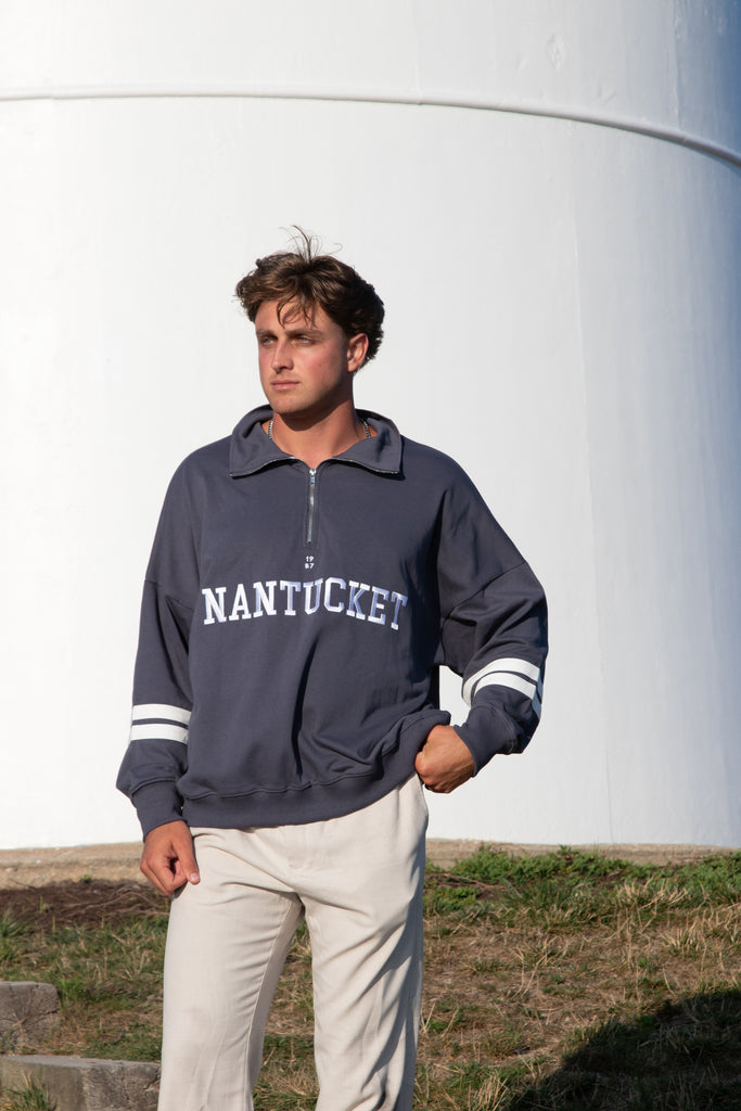 The stand collar and minimalist quarter zip elevate the everyday, taking you from lounge to street with intention.