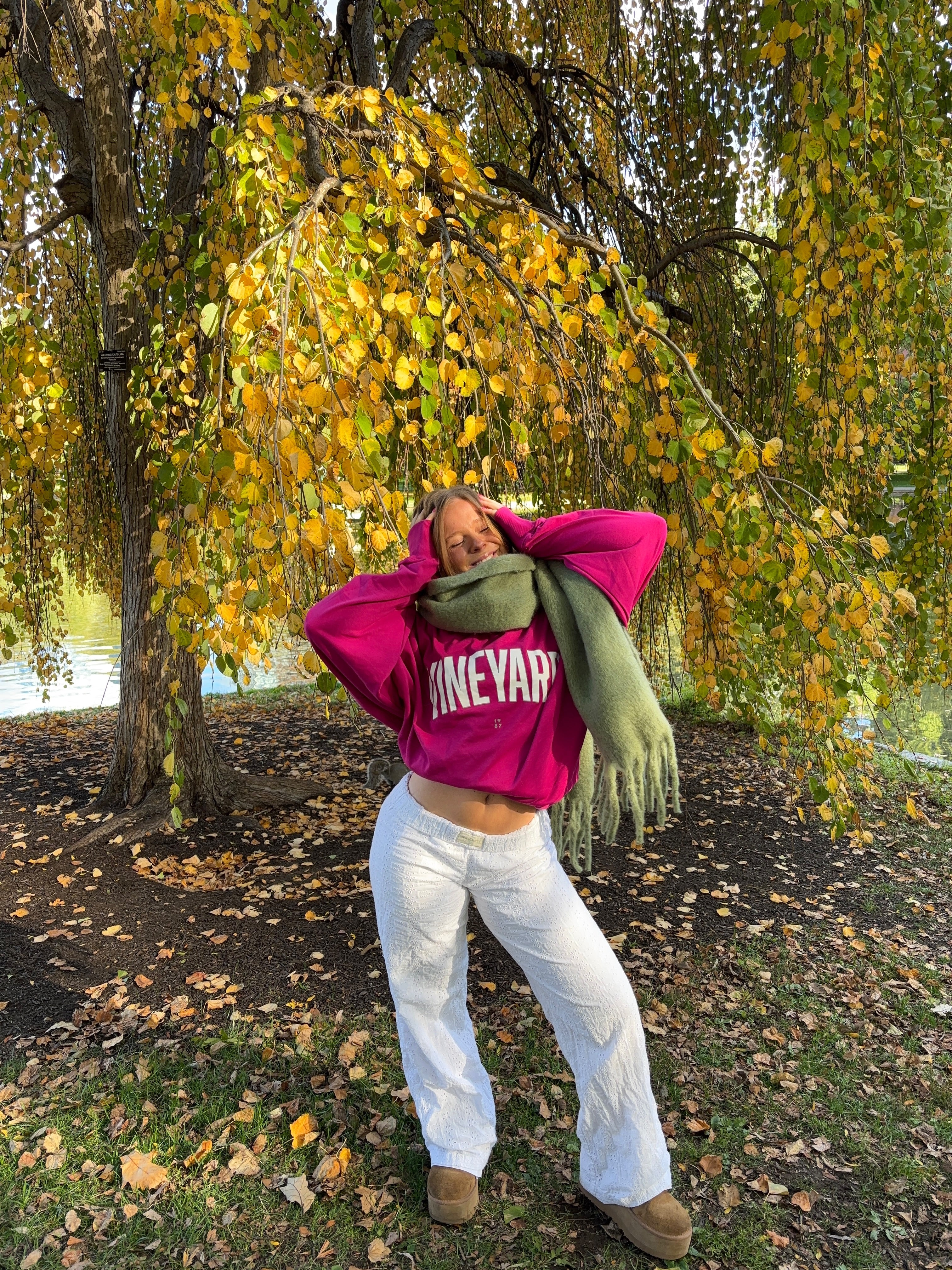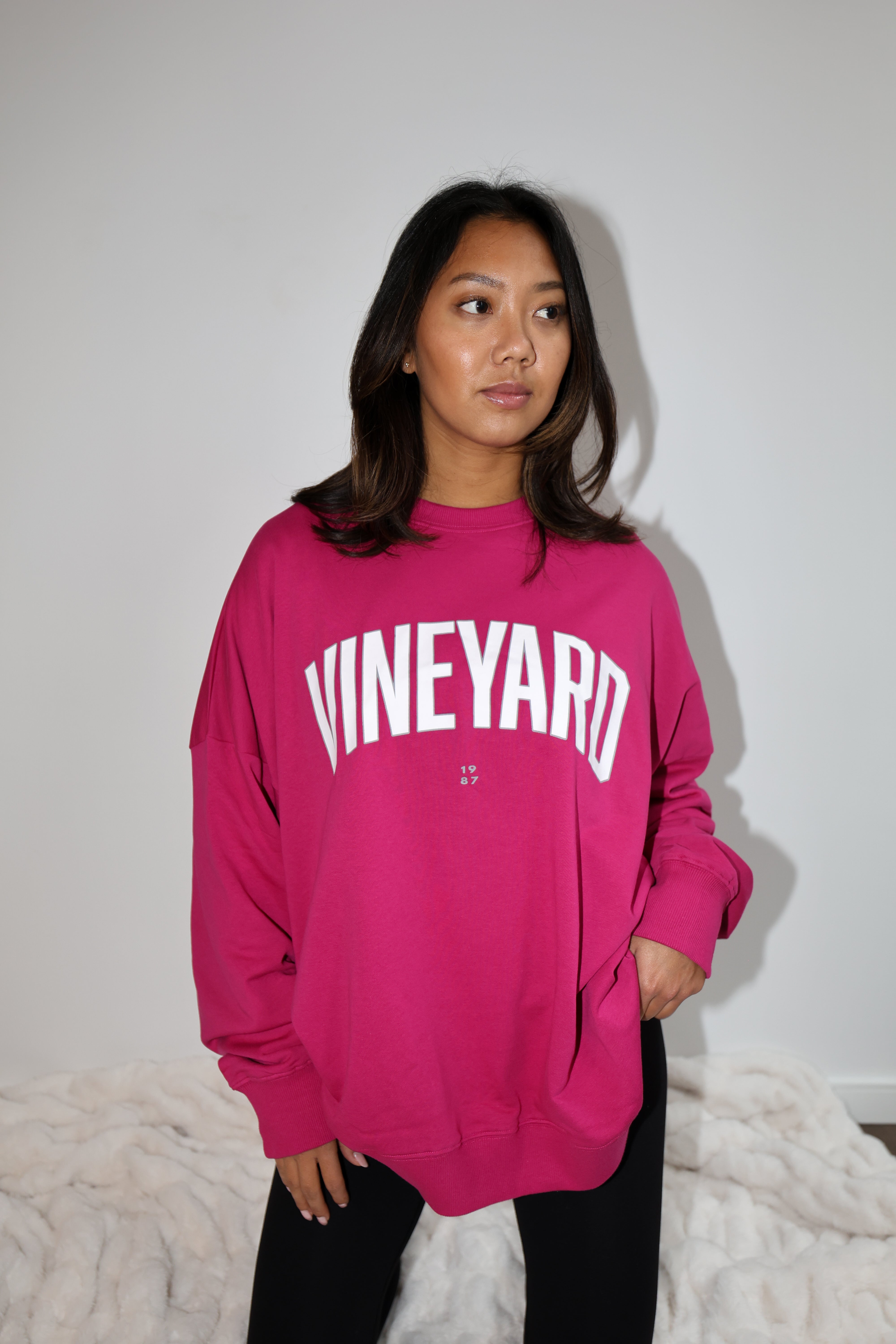 Sun-faded and salt-kissed, the LABEL CREW in Berry channels the laid-back energy of summer days on the Vineyard. Featuring bold collegiate lettering across the chest and a perfectly broken-in fit, it’s the kind of piece that gets better with every wear.