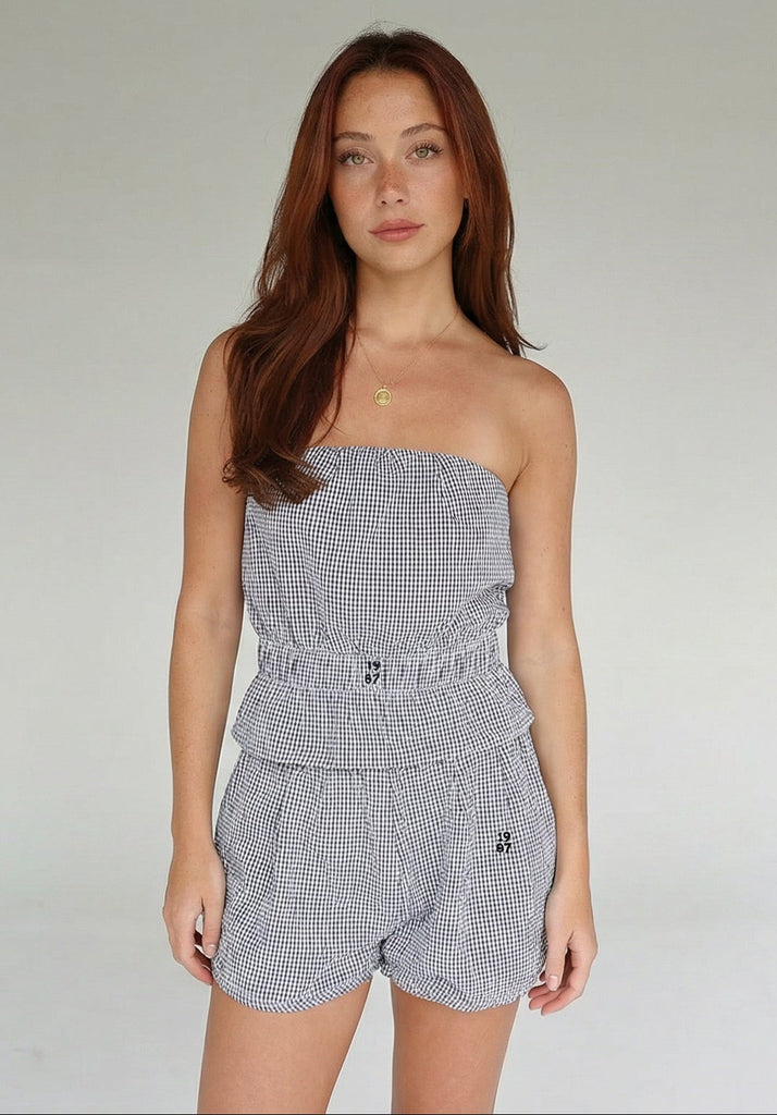 Easy elegance, made for summer. The Monaco Shorts in Vichy Noir are part of our {LUXURY LINE}, designed in a breezy, lightweight gingham that feels like a breath of fresh air. With a softly gathered waistband and subtly bubbled hem, they bring playful structure to an otherwise relaxed silhouette.