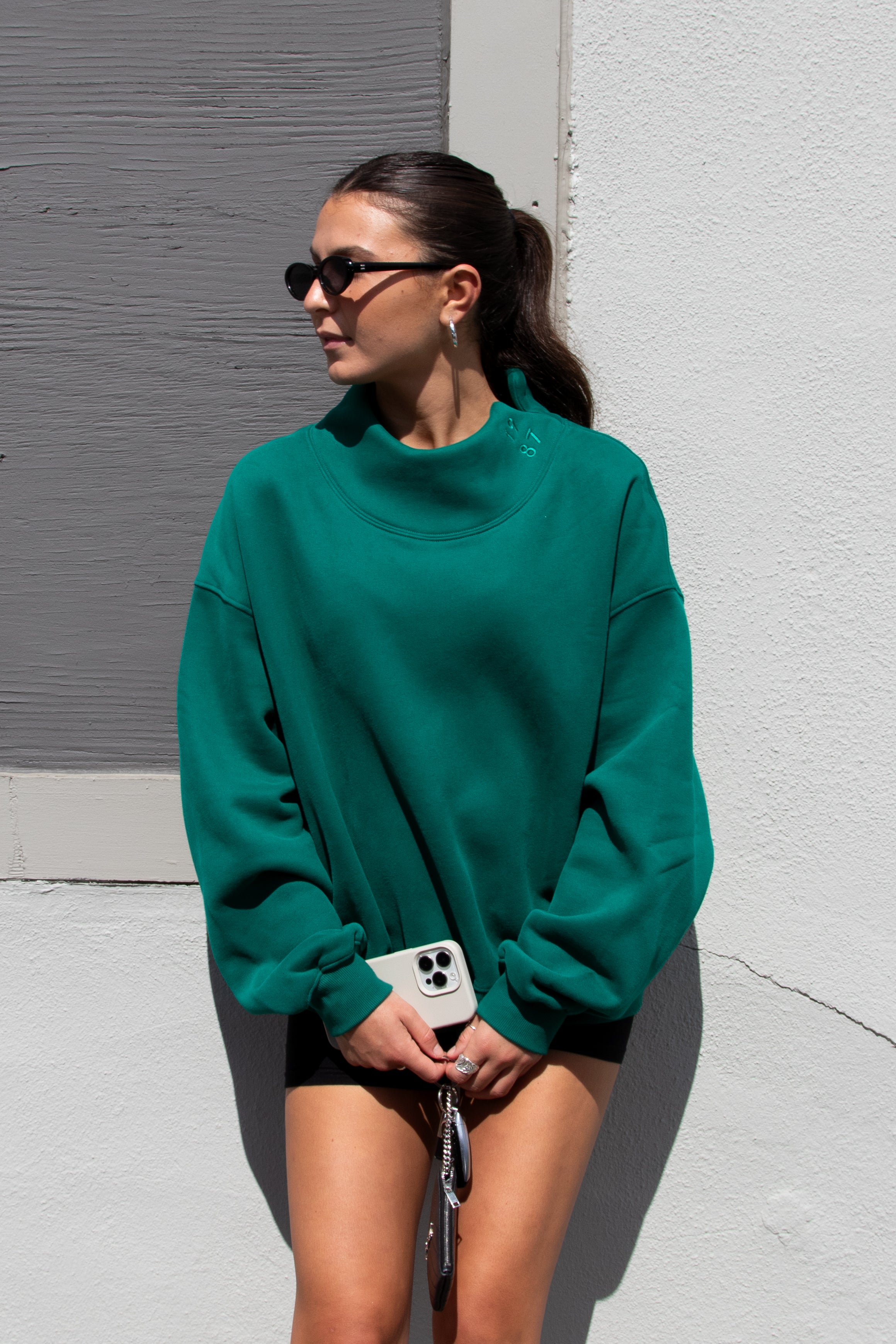 An homage to timeless tailoring with a modern edge, the Equestrian Crew reimagines loungewear through a luxury lens. Crafted in a rich green hue, this piece pairs the ease of your favorite hoodie with the sophistication of a sculptural silhouette.