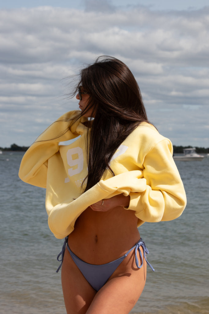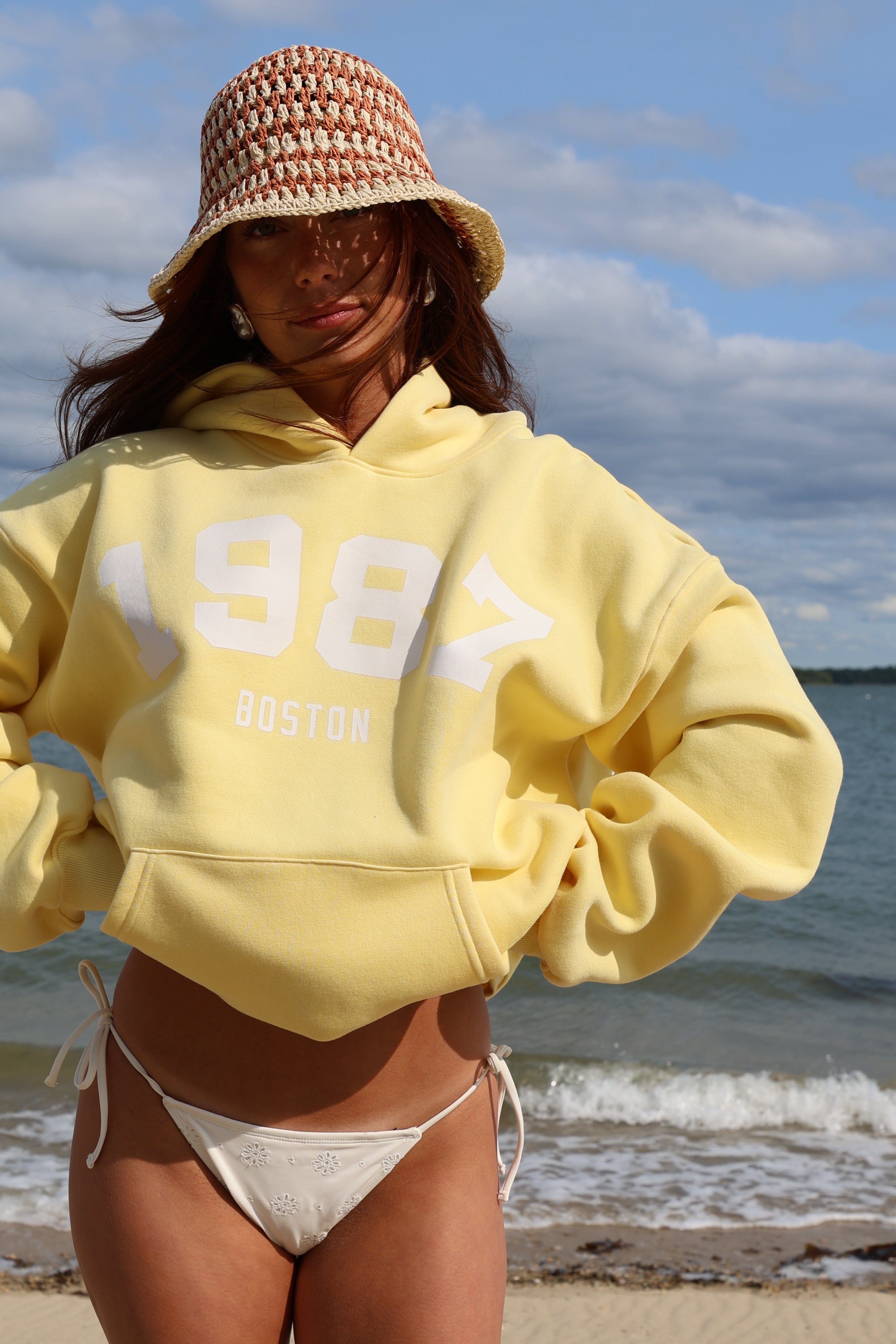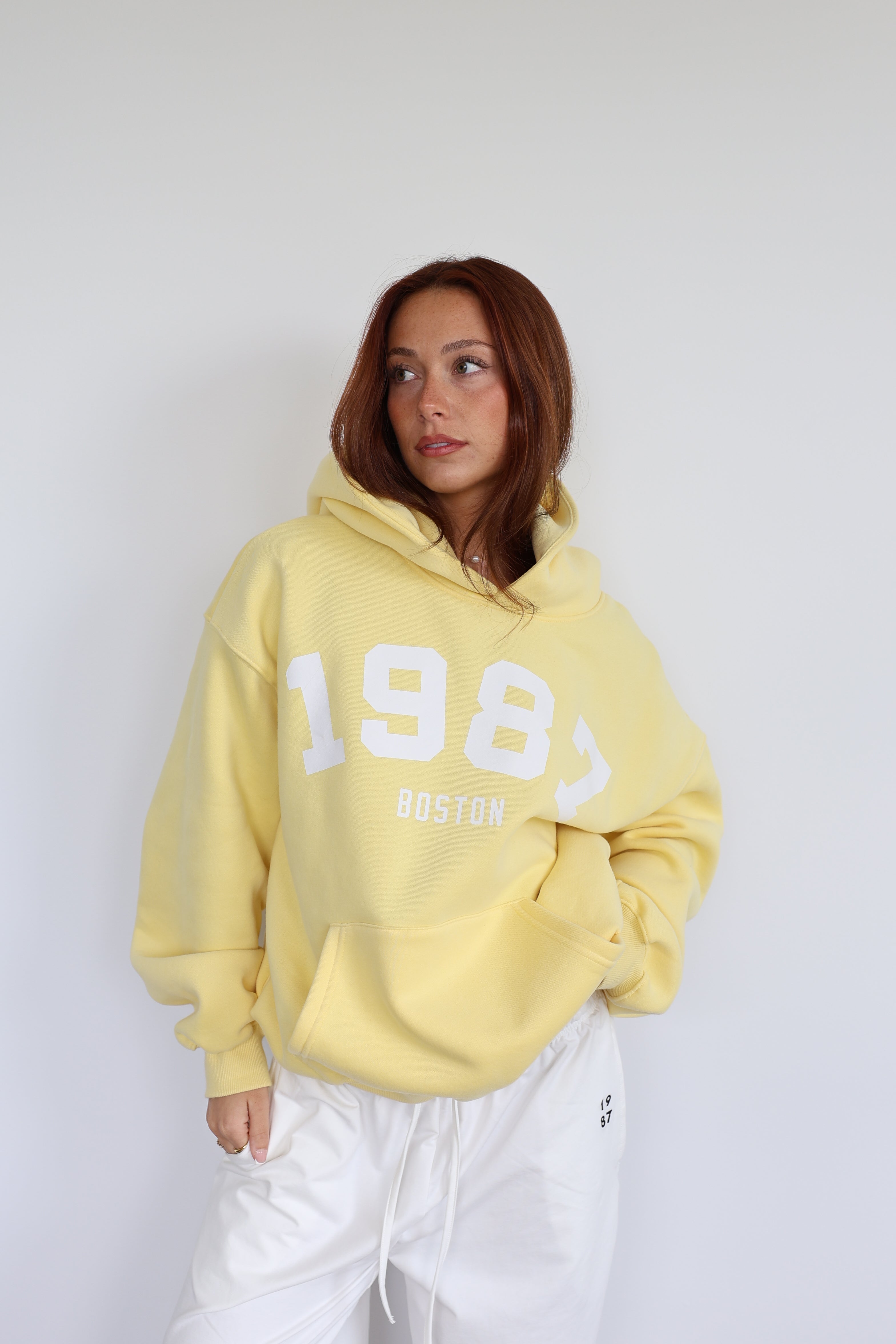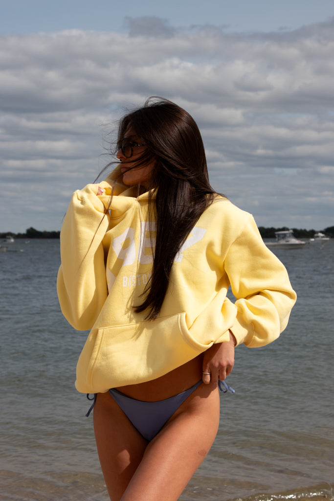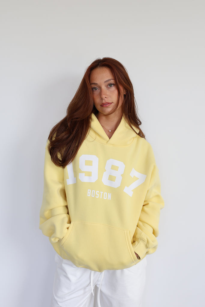 Introducing the Vintage Hoodie in "Daffodil" — a golden-hour take on a classic. Inspired by the collegiate hoodies worn by A-list celebrities, we reimagined the look in a soft, sunny yellow for that warm, carefree summer vibe. With bold block lettering, we made our brand the university—timeless, effortless, and forever vintage.