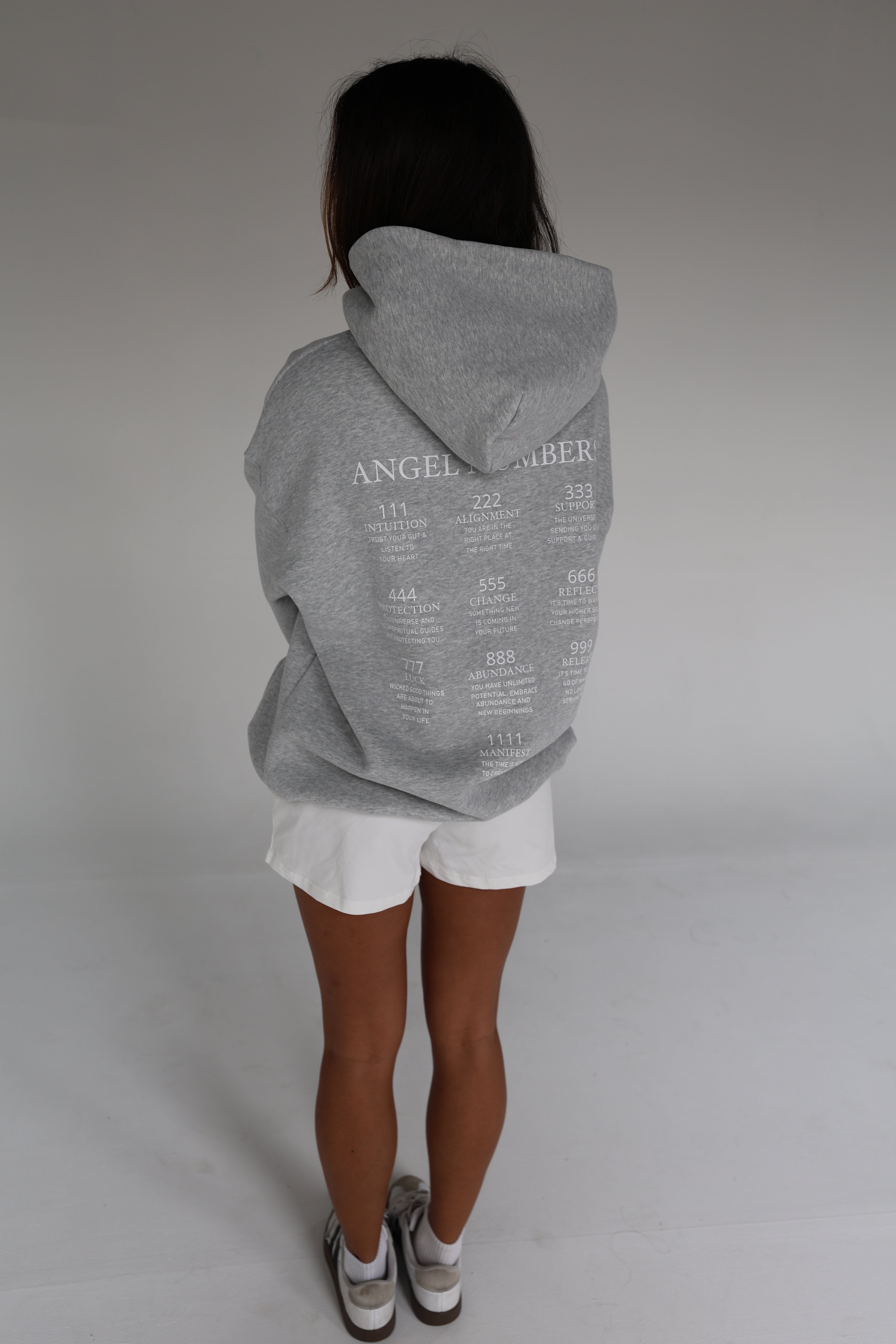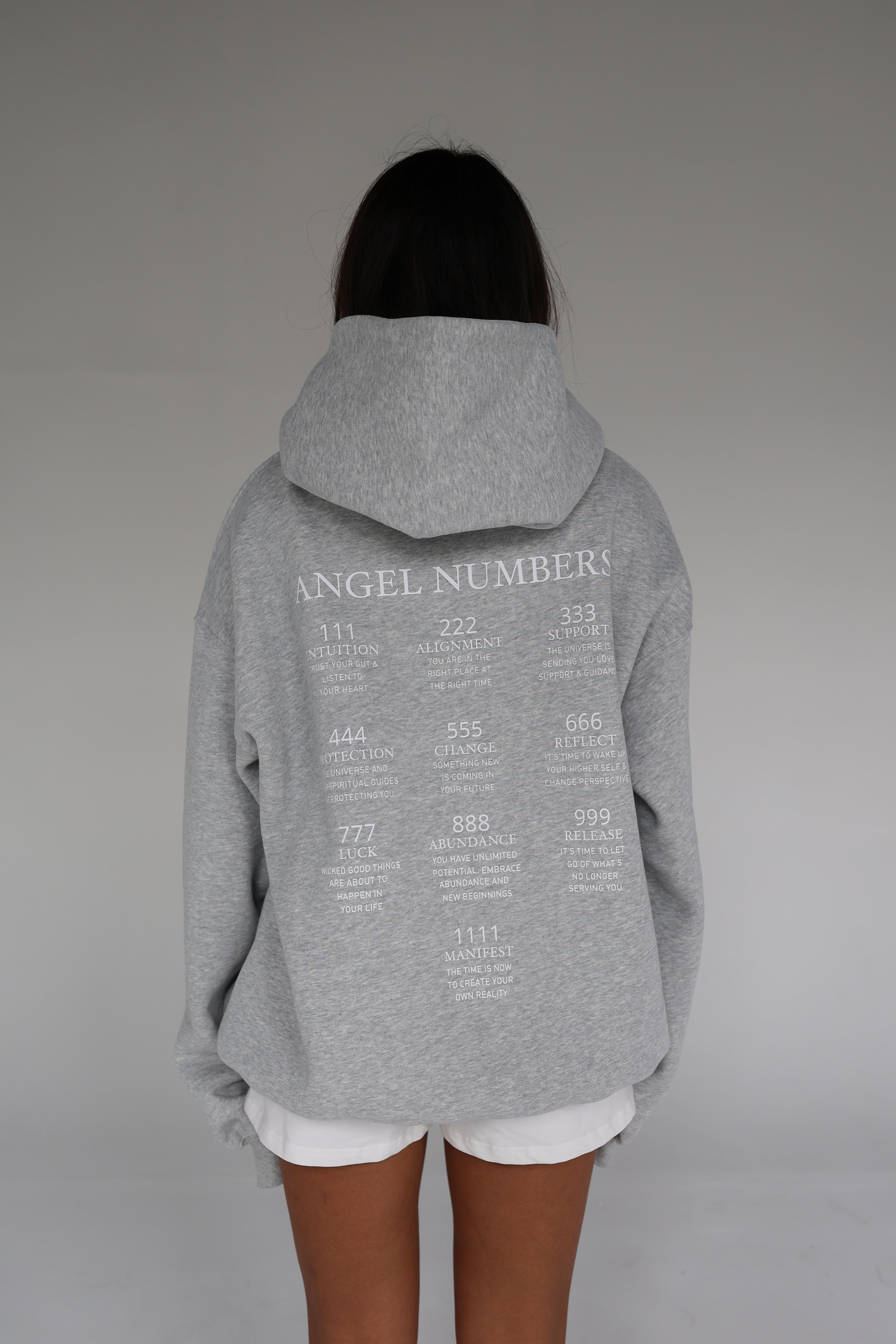 Meet the Angel Number Hoodie — Inspired by our founder Jennifer DeAngelis (@jendeangelis), whose last name translates to “of the angels” in Italian. This piece anchors our Of the Angels collection, featuring a full angel number chart across the back and a subtle 1987 signature at the neckline.
