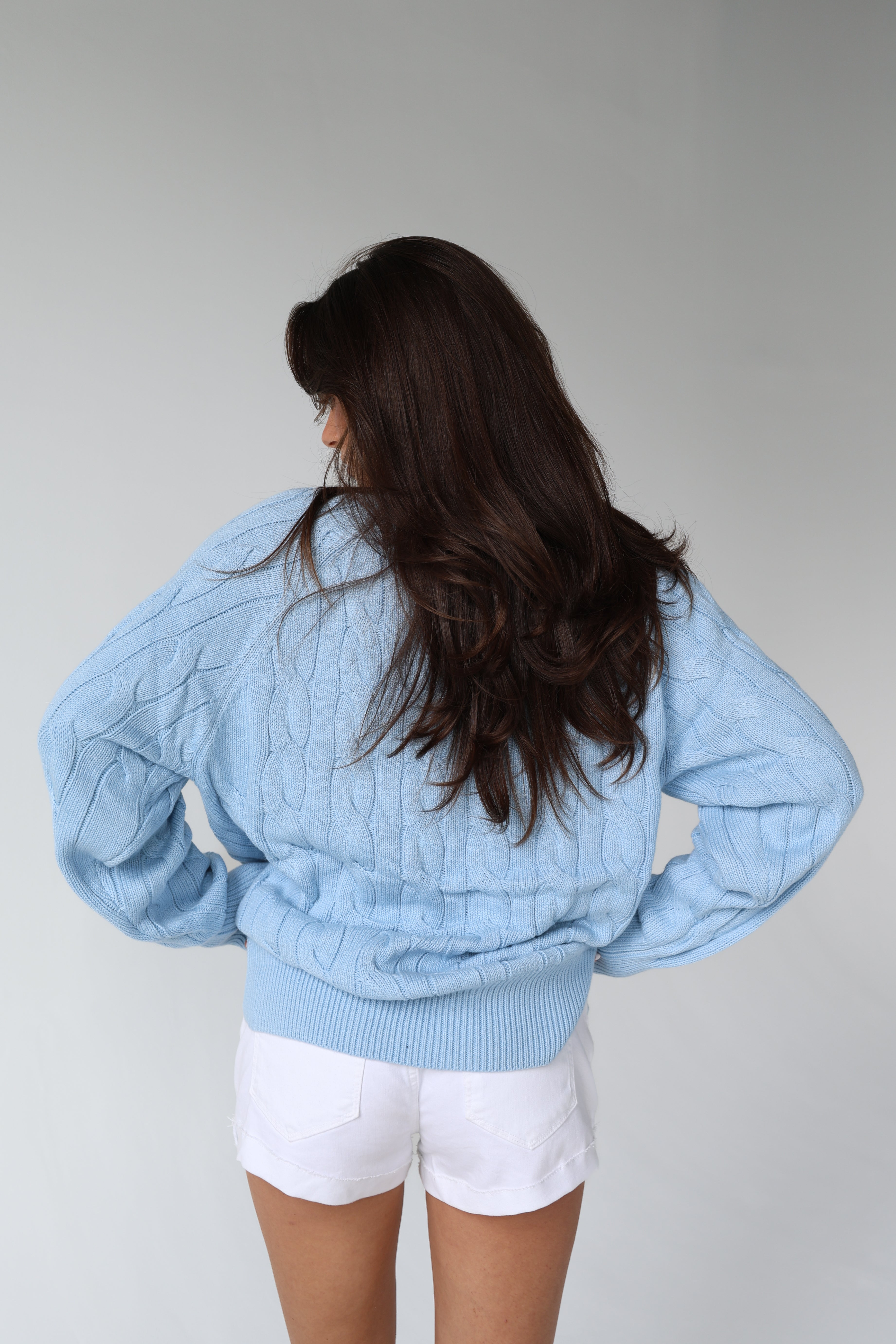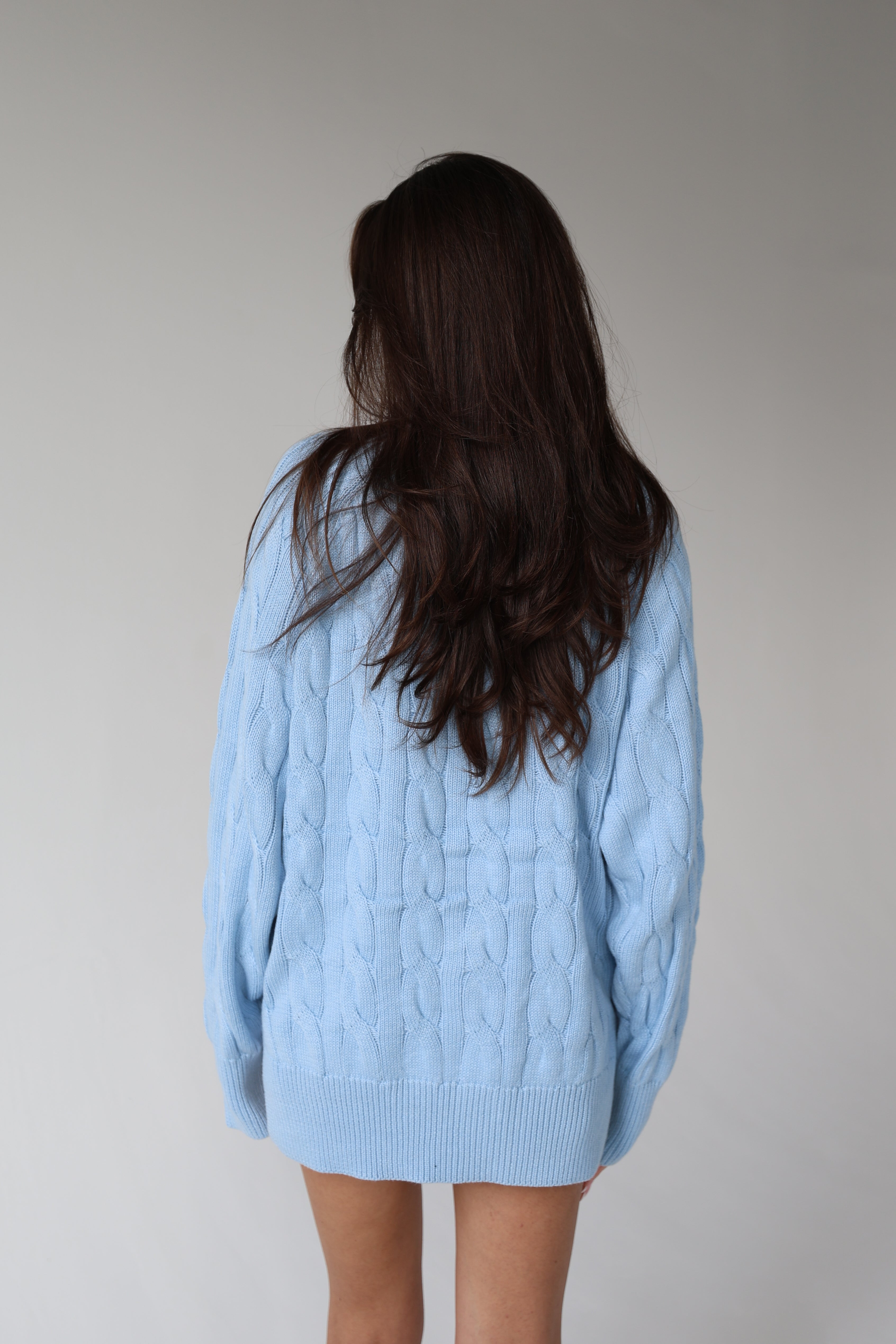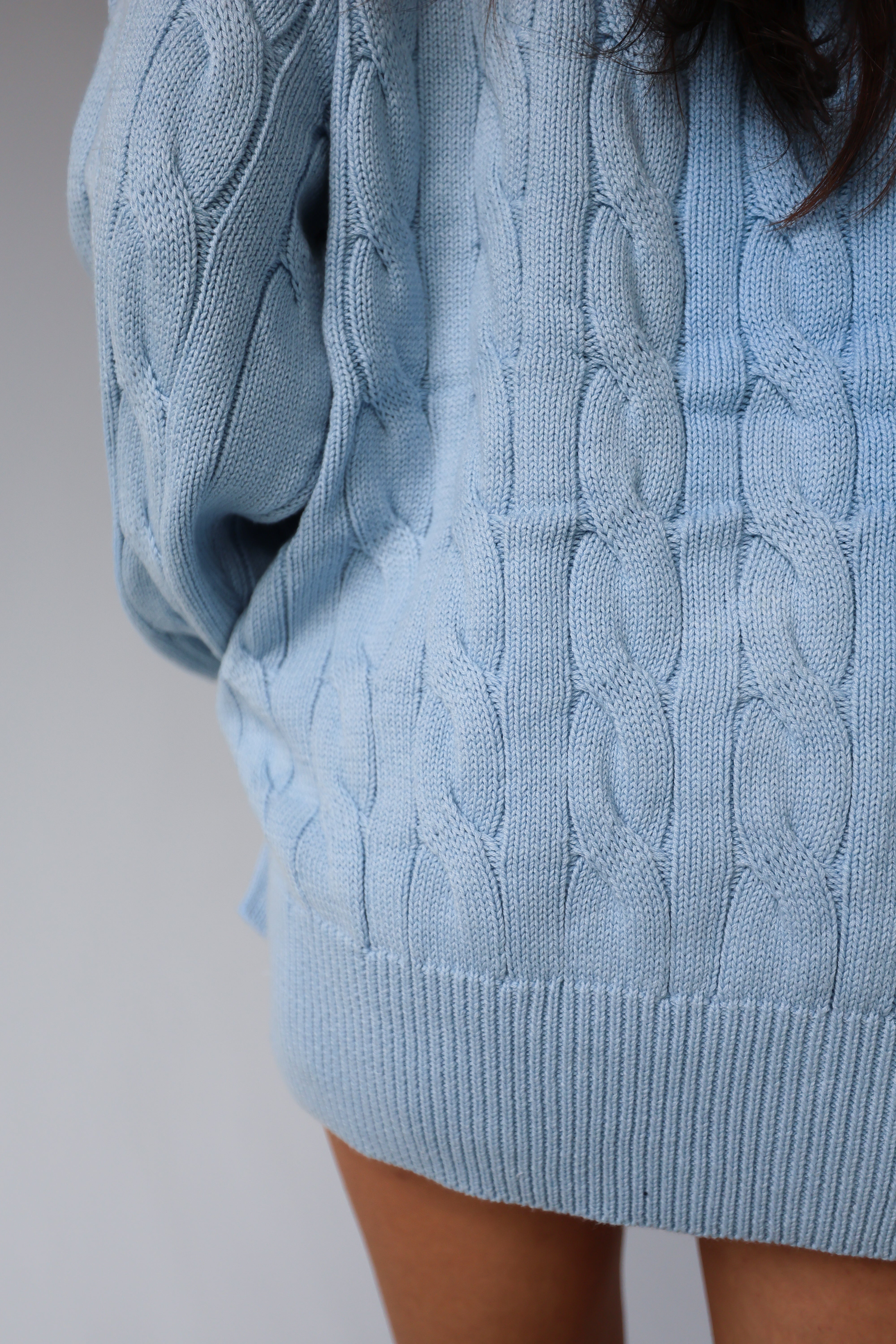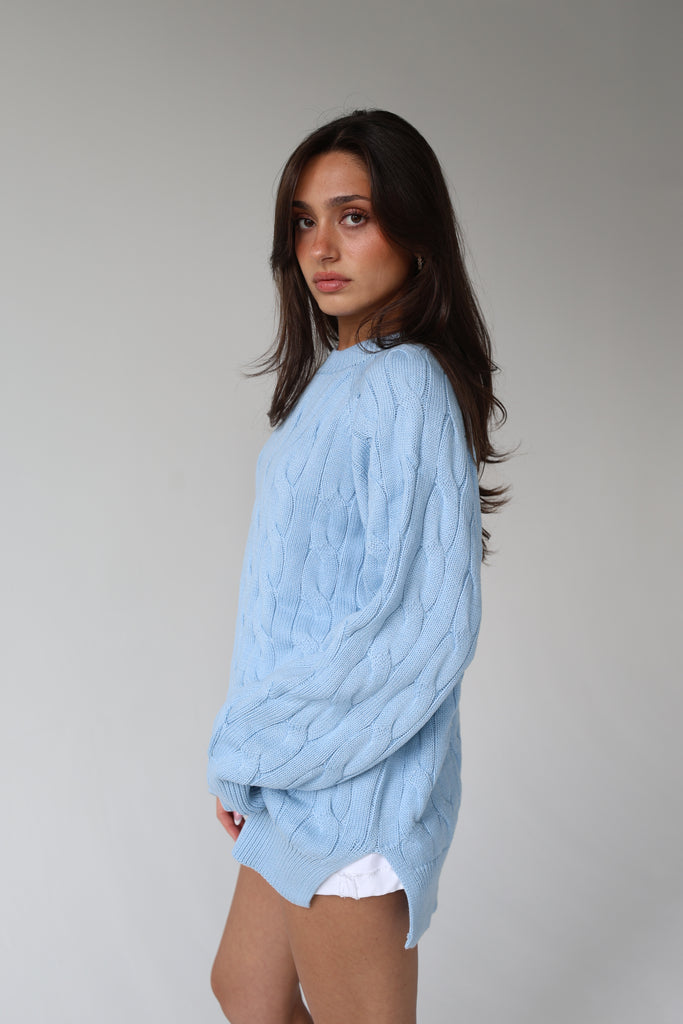 Meet your new coastal essential. The Cashmere Crew in Monomoy is crafted from our premium cashmere blend for an ultra-soft, breathable feel with structure that holds its shape. The classic cable-knit texture is paired with a relaxed, oversized fit and side slits for ease and movement.