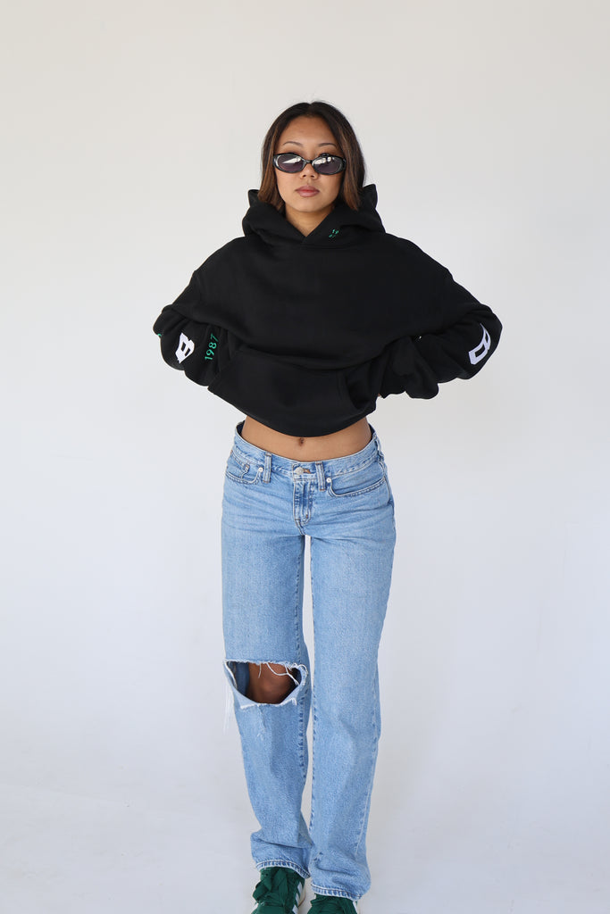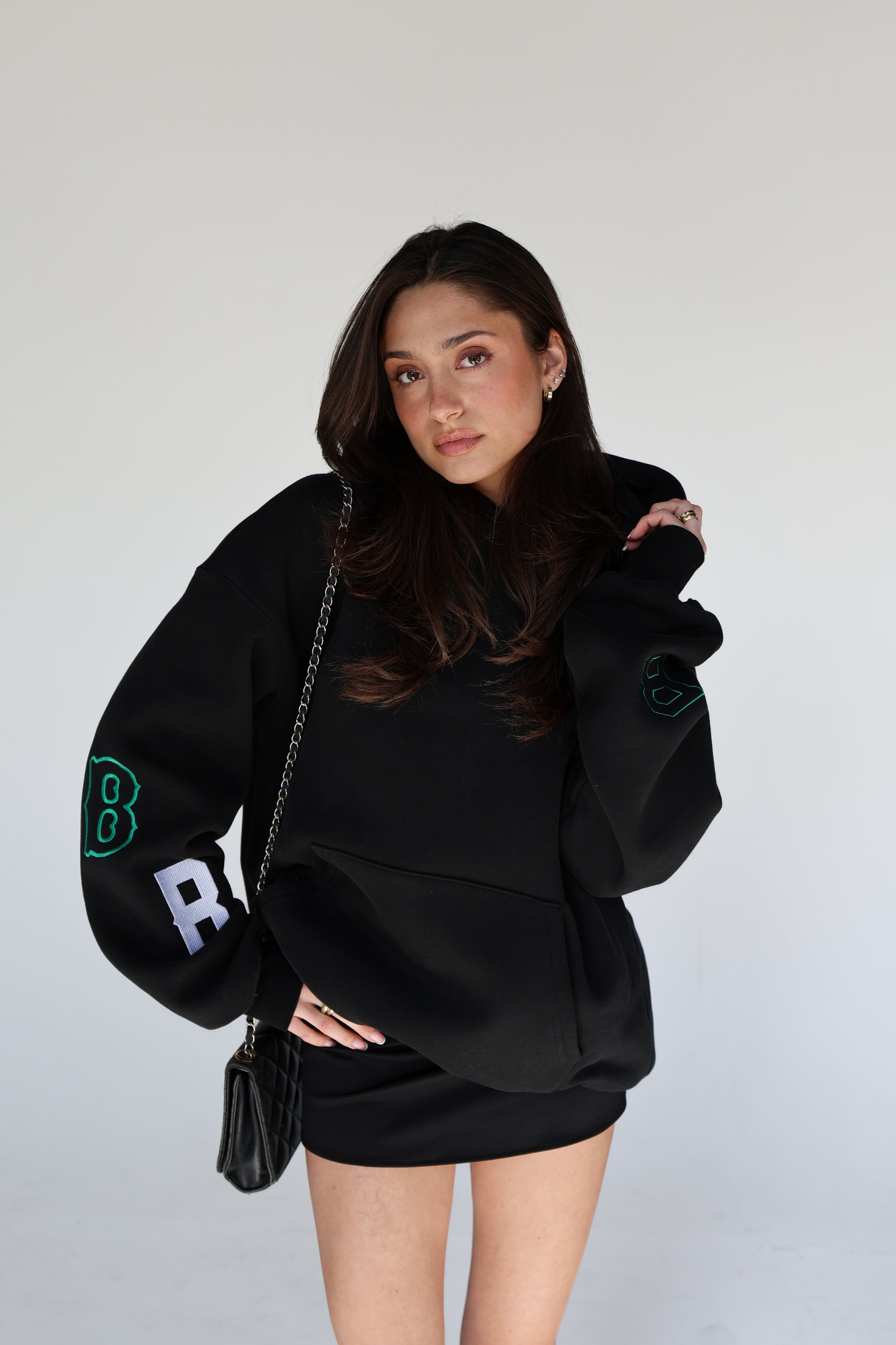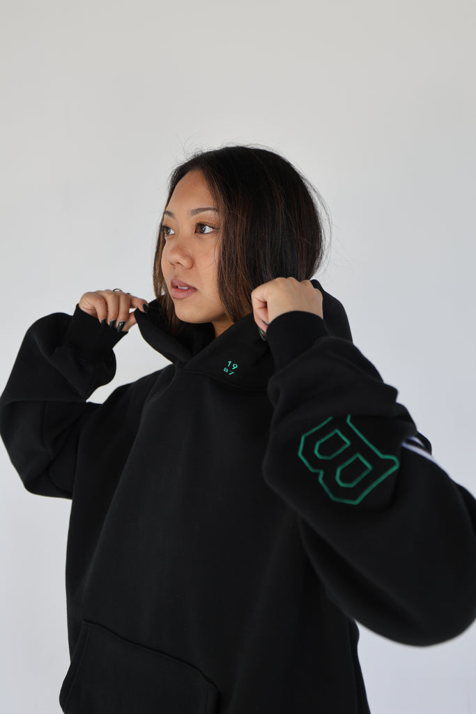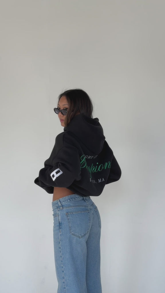 Boston’s legacy in sports is unmatched—40 championships and counting. We honor this winning tradition with our Home of Champions hoodie in black with, refined green hue accents, embodying the city’s pride.