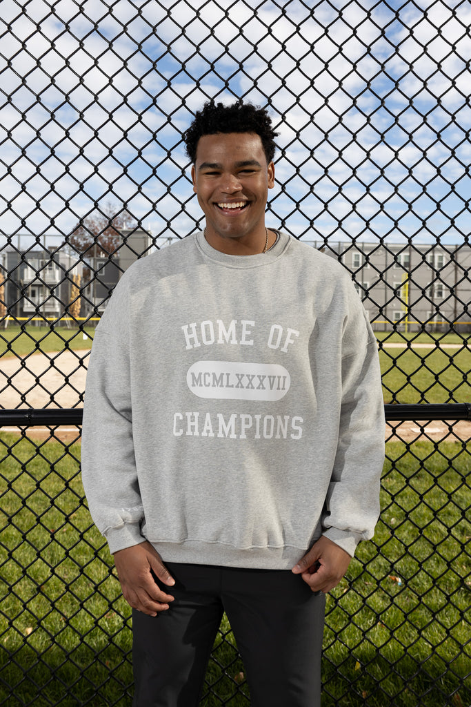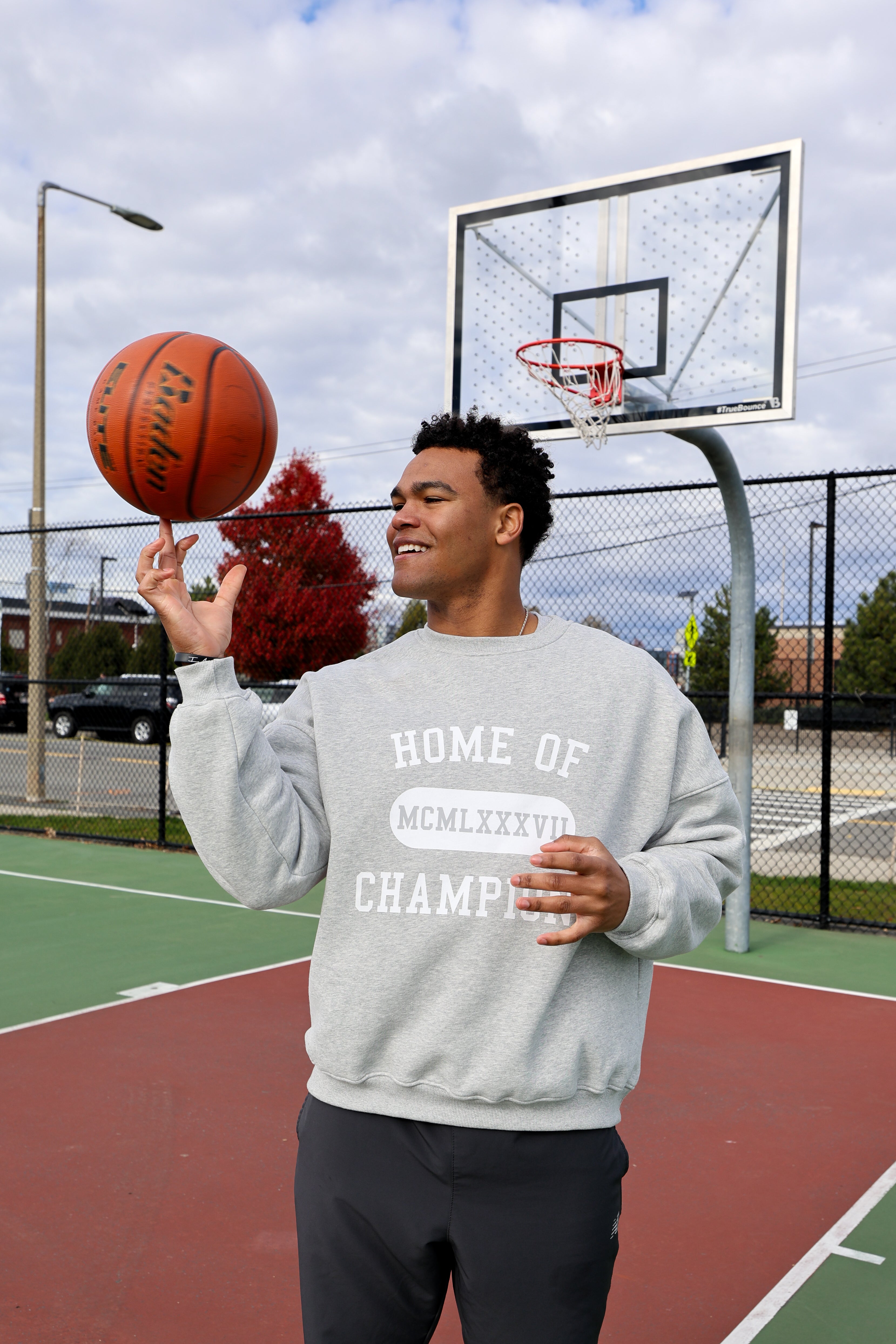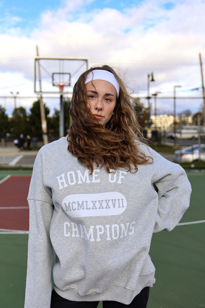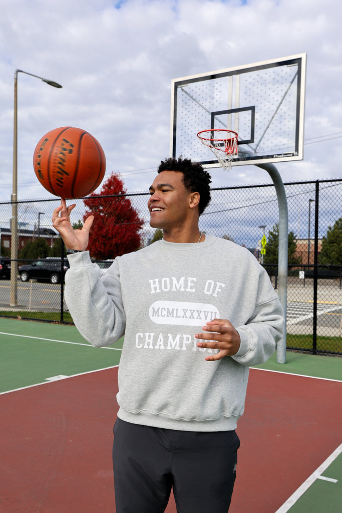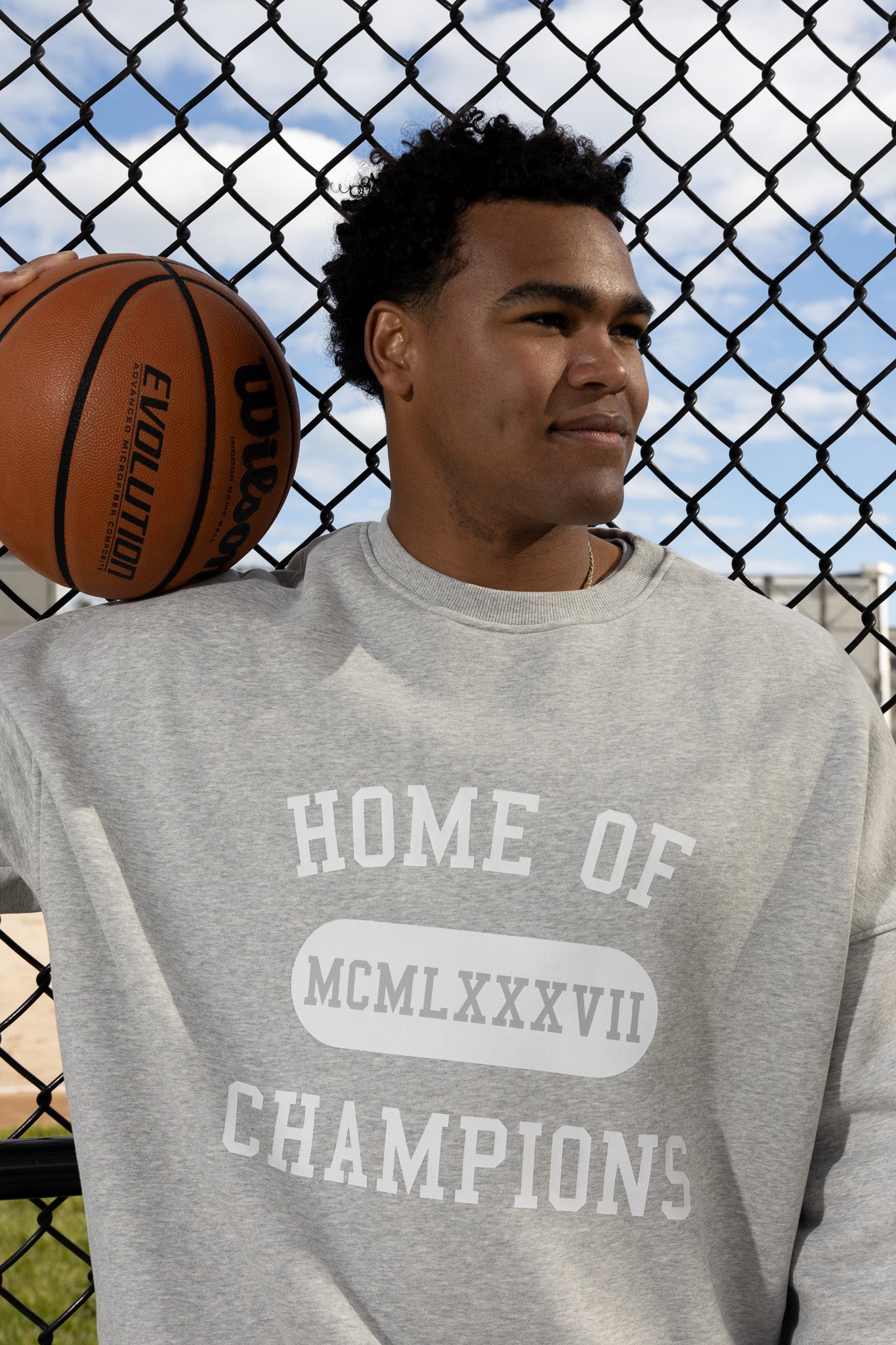 The light heather grey tone keeps it timeless, while the Home of Champions graphic and MCMLXXXVII — the Roman numeral for 1987 — ground it in our signature Boston legacy. Clean, collegiate, and built for the everyday athlete — whether that’s the court, the city, or your morning routine.