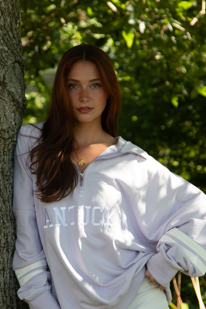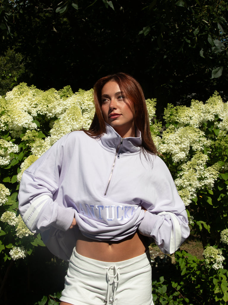 Effortless luxury meets lived-in comfort. The LABEL QUARTER ZIP IN "LILAC" is crafted from an exceptionally soft, brushed fabric that feels like your favorite piece—worn in all the right ways, without ever looking it.