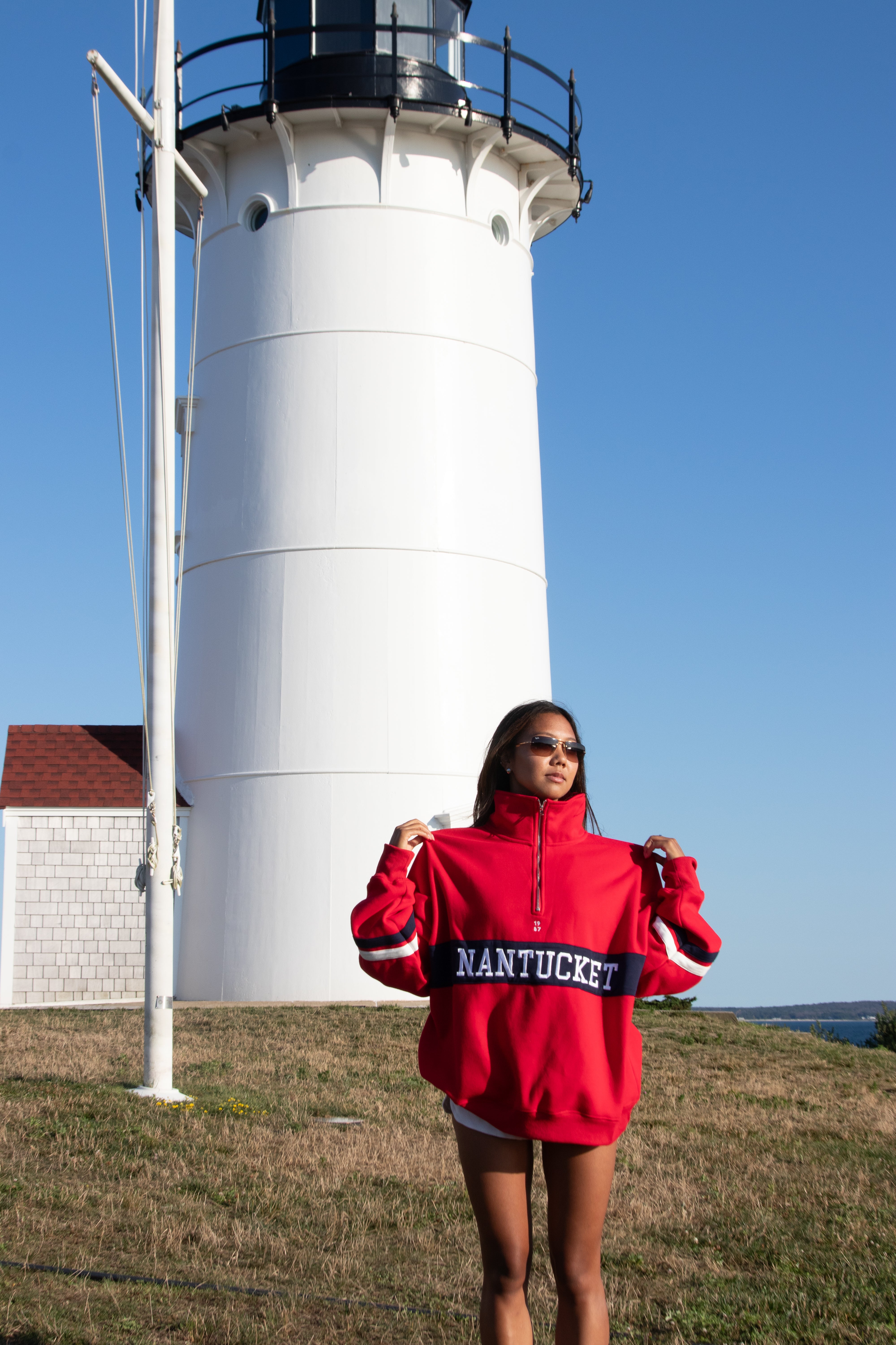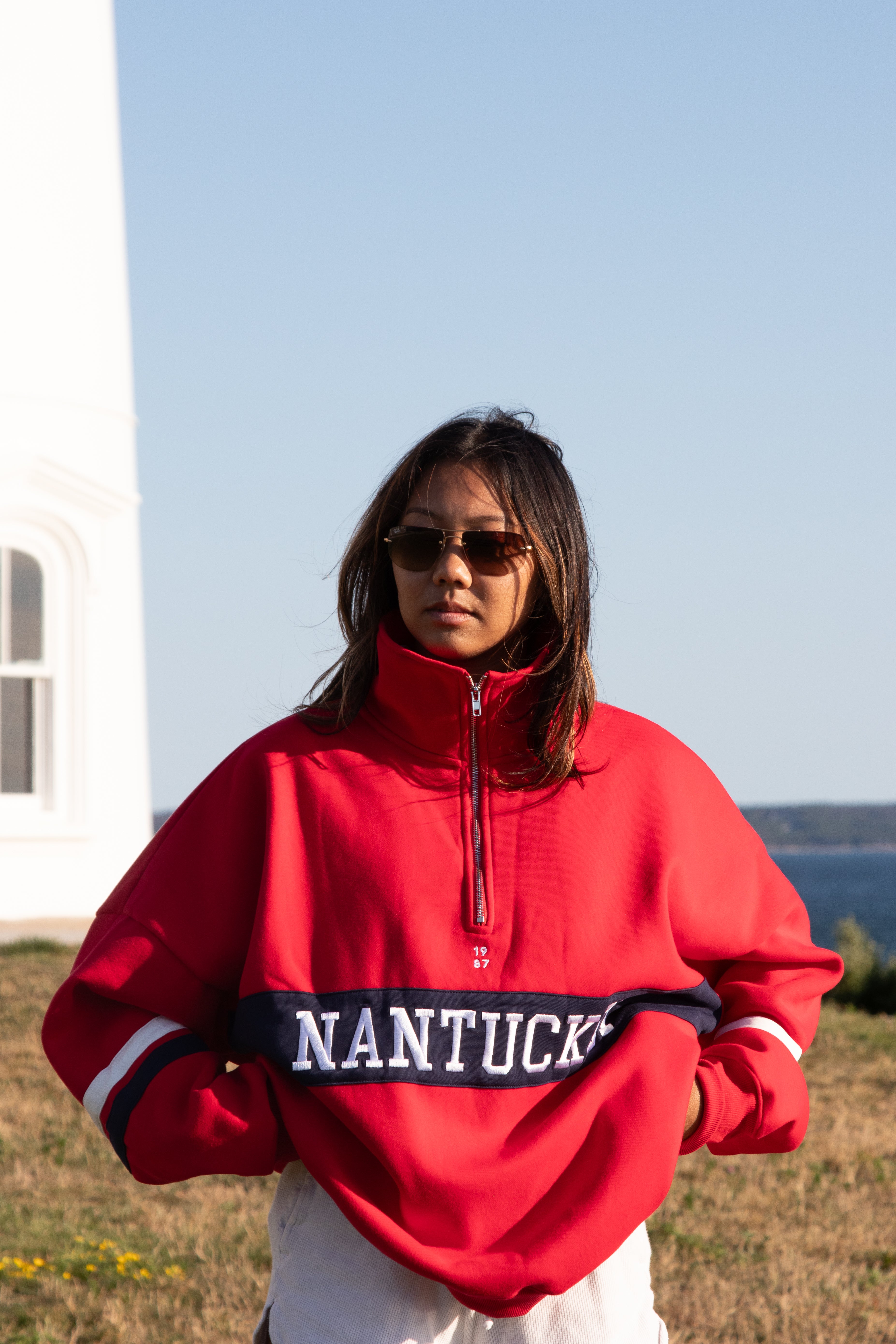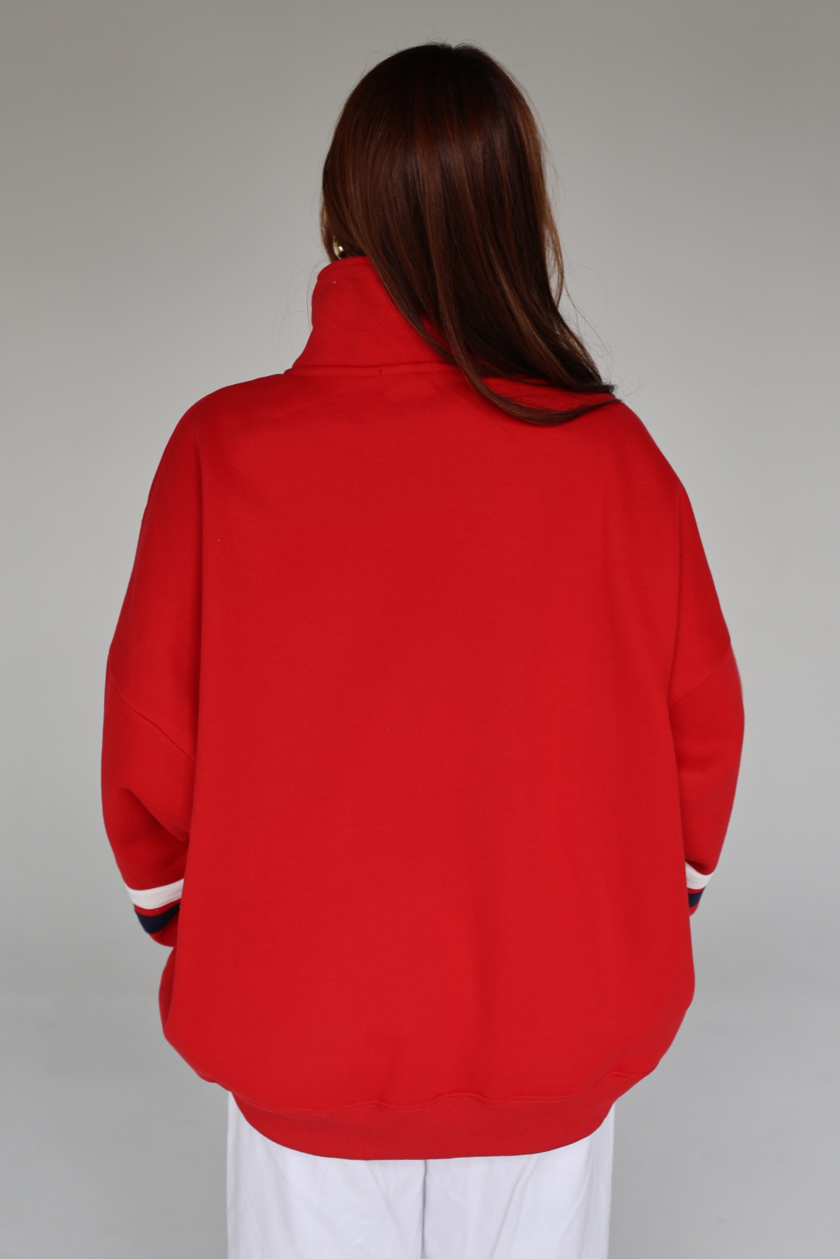 The stand collar and minimalist quarter zip elevate the everyday, taking you from lounge to street with intention.