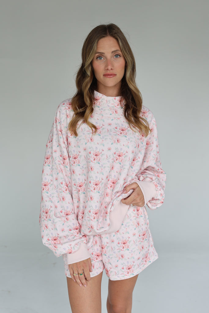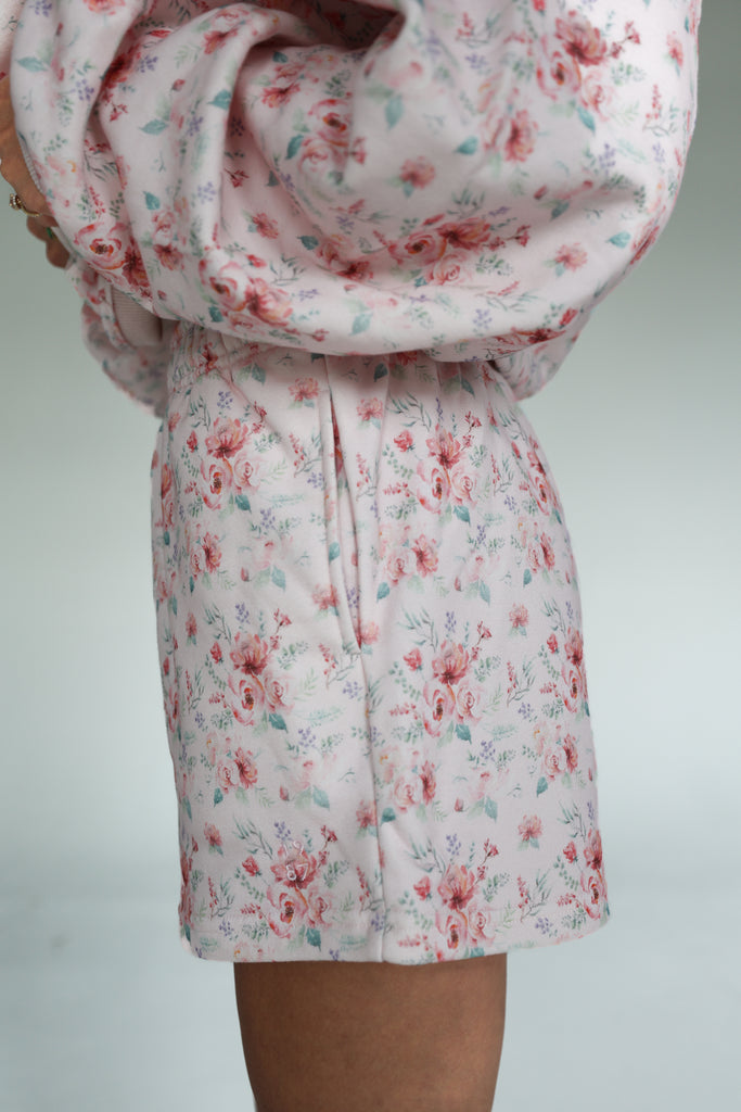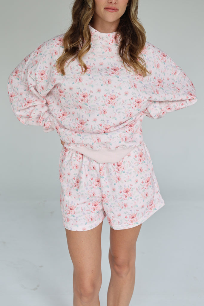 Shorts in Bloom are the perfect match to our Equestrian top — but stand beautifully on their own. Crafted in our dreamy cotton blend and adorned in an allover rose print, they blend ease with polish.